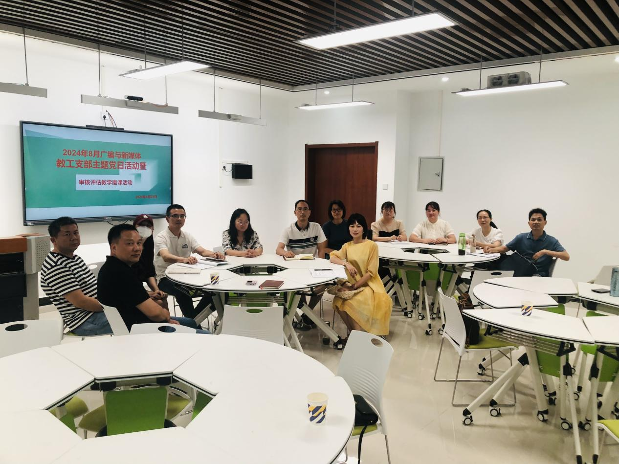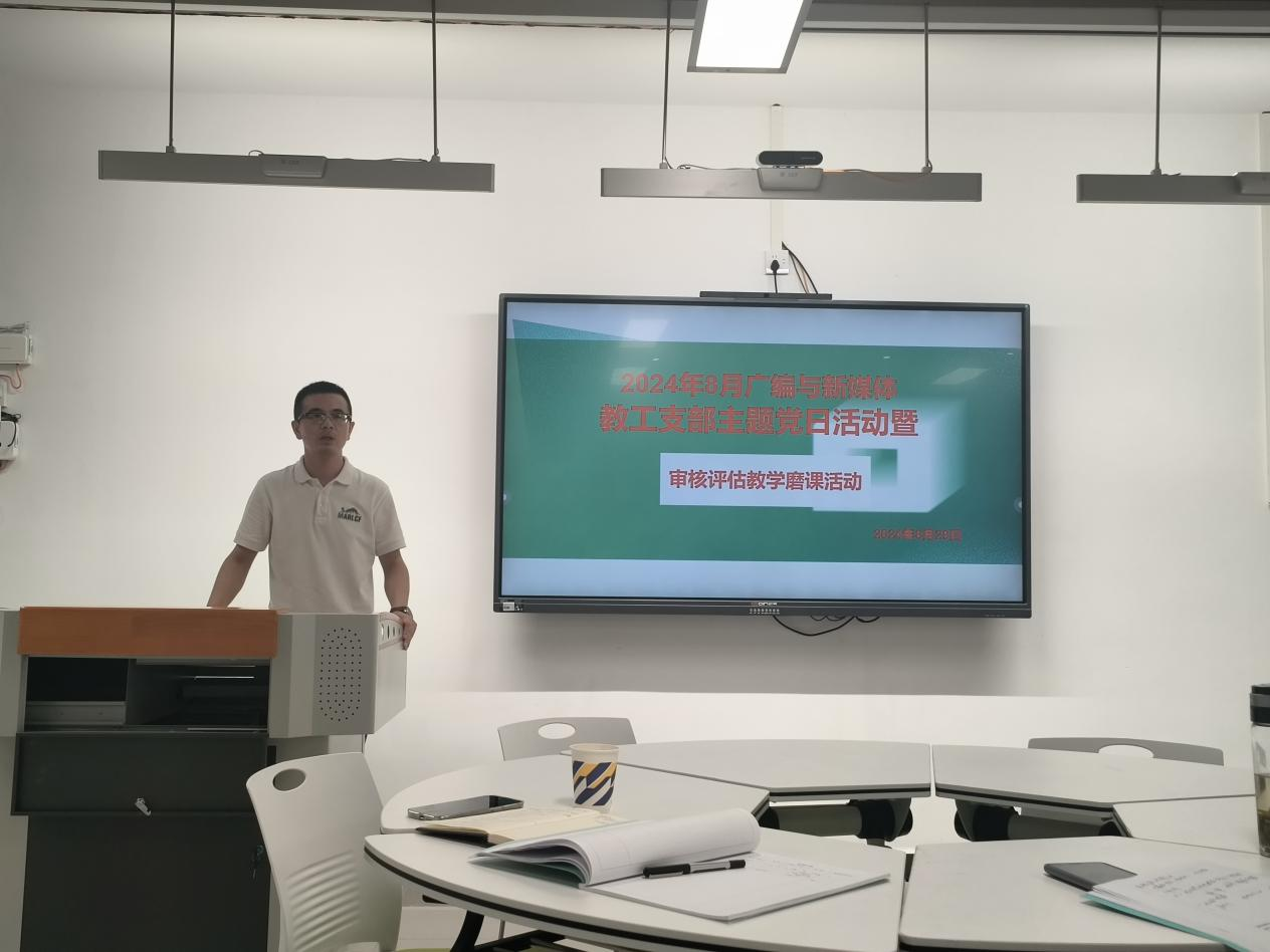 在学校迎接本科教育教学审核评估之际,广编与新媒体教工支部于2024年8月29日下午在揽胜楼1503教室举行主题党日暨审核评估教学磨课活动,活动由谭辉煌副院长主持。