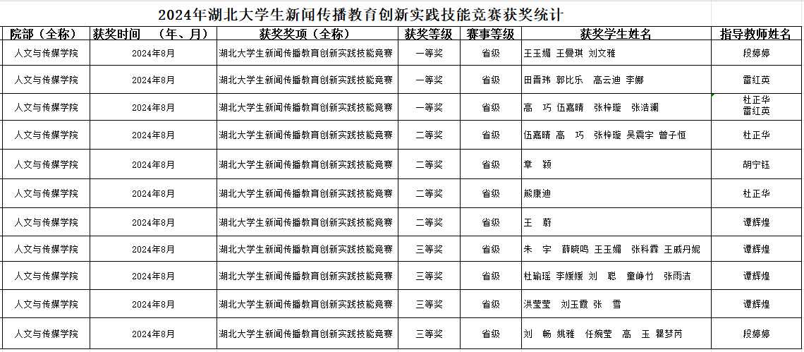 近日,湖北大学生新闻传播教育创新实践技能竞赛结果完成公示,结果显示,全省49所本专科高校参评的637项大学生新闻传播教育创新实践技能竞赛作品中,评审出一等奖51项,二等奖101项,三等奖116项。我校tyc7111cc太阳成集团通过精心组织选送的学生实践作品在大赛中创历史最好成绩,由谭辉煌、杜正华、雷红英、段婷婷、胡宁钰担任指导老师指导的作品共获省级一等奖3项、二等奖4项,三等奖4项,位居全省省属高校前列,太阳成集团tyc7111荣获2024湖北大学生新闻传播教育创新实践技能竞赛优秀组织奖。