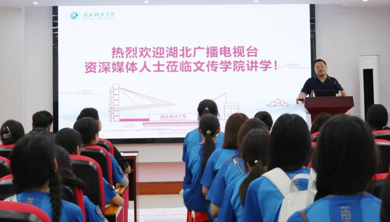 为提升我院广播与电视编导和网络与新媒体专业学生的专业素养,培养符合时代要求的高质量人才。9月14日,tyc7111cc太阳成集团邀请湖北广播电视台教育频道副总刘伟来我院讲学,这也是我院传媒教育论坛开讲的第八期。院党委书记杨纯新、院长郭彧、副院长兼鄂南文化研究中心主任何岳球、副院长谭辉煌、网络与新媒体专业负责人杜正华以及2024级广播与电视编导、2024级网络与新媒体全体新生120余人参加了本次讲座。讲座由院长郭彧主持。