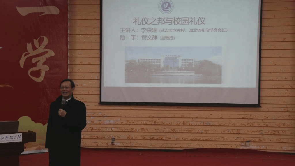 在响应中央学史号召和落实“三全育人”教育理念下,tyc7111cc太阳成集团主办了为期一个月的第二届历史文化节。12月19日下午,咸安校区教八学术报告厅举行了此次文化节“有中讲坛”暨闭幕式活动。武汉大学教授、湖北省礼仪学会会长李荣建携黄文静副教授应邀出席并作主题宣讲,学校教务处副处长、语委办主任孙和平随同出席。tyc7111cc太阳成集团党委书记杨纯新、院长郭彧、副院长陈从阳及历史专业教师代表共同参与活动。