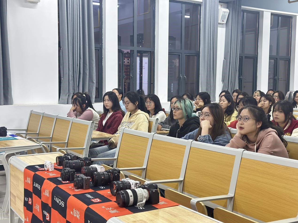 在讲座中,刘月老师向同学们介绍了以索尼品牌为主的相机、摄像机以及微单,为学生们介绍了摄影器材的选择和市场需求。以生动的例子和实用的技巧,为学生们揭示了摄影艺术的奥秘,引导他们更好地理解和运用摄影技术。