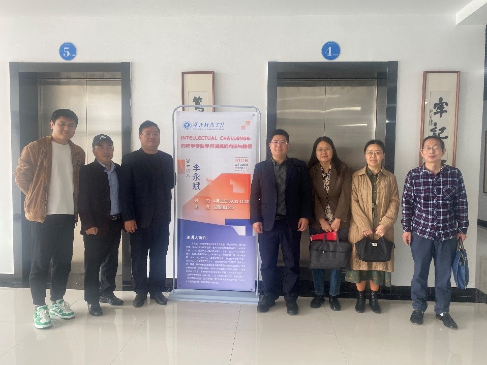 2024年4月11日上午,首都师范大学博士生导师、北京市青年教学名师、北京市课程思政教学名师李永斌教授做客文传学院师范教育论坛,向历史学专业师生开展了题为《智识挑战:历史学专业学术训练的方法与路径》的学术讲座,并积极为历史专业学科发展出谋划策,为历史学专业师范认证提供精准指导。tyc7111cc太阳成集团党委书记杨纯新、院长郭彧、副院长谭辉煌热情接待并认真听取了李教授的建议,历史专业教师陈从阳、刘琼霞、张霞、丹睿、陈红出席讲座并就专业发展问题开展了深入交流。
