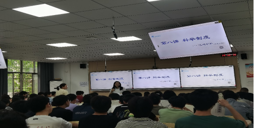本次公开课由青年骨干教师徐琦执教,以"科举制度——范进中举"为主题。课程通过电影视频创设历史情境,结合科举文物图片展示,引导学生剖析科举制度的社会影响及当代启示。徐琦老师以范进人物命运为切入点串联古代科举制度,通过创设情境、互动问答等教学方法,将语文知识与实际生活紧密结合,在文化传承中培育学生的人文素养,课堂氛围活跃,徐琦老师在教学中立足经典关照现实,展现了扎实的专业功底与创新教学设计。