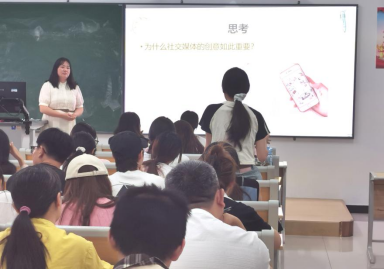 “社交媒体创意为何如此重要”,胡美玲老师首先从社交媒体应用场景出发,抛出问题,通过互动导入新课。随后,社交媒体的概念、社交媒体的重要性、社交媒体的分类等课程内容依次展开,授课循序渐进,深入浅出。胡老师不时以抖音、小红书等平台为例,深入剖析社交媒体的内涵与价值,引导学生进行创意思考,课堂氛围活跃,实践性与启发性兼备。