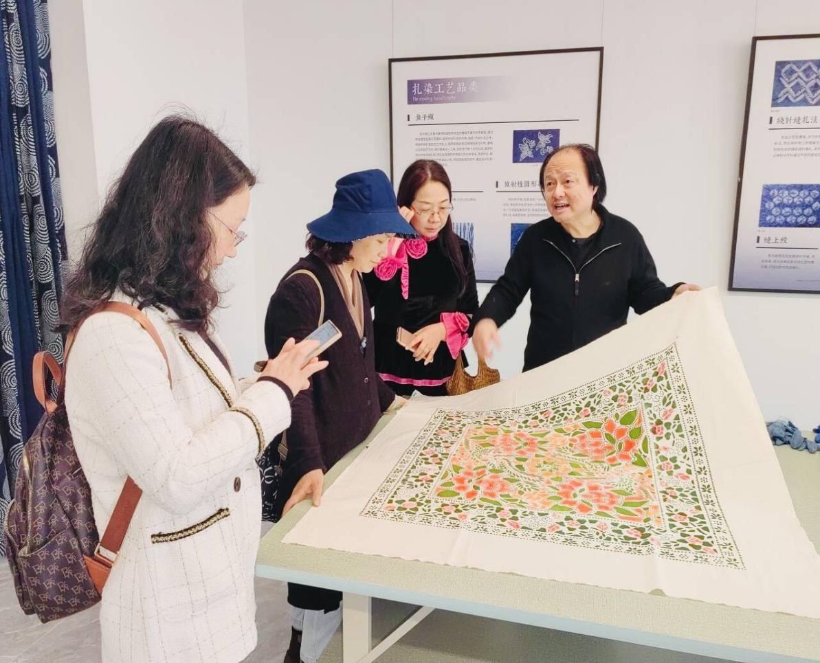 2024年4月9—11日,为了学习国家级非物质文化遗产蓝印花布的制作工艺,“鄂南民间草木染”团队一行五人在鄂南文化研究中心何岳球主任的带领下,赴江苏南通进行了学习交流,中心的姜爱、陈姜格老师,艺术学院赵爱新老师以及洪子坚同学参与了此次活动。
