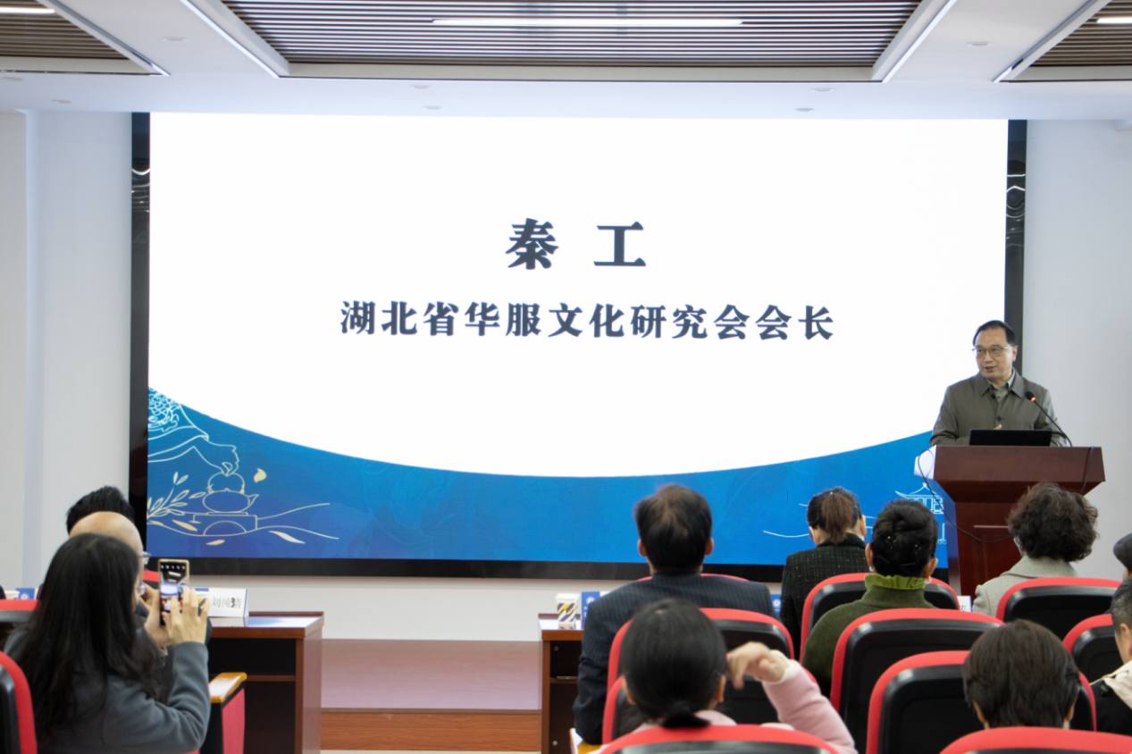tyc7111cc太阳成集团院长郭彧教授、湖北省华服研究会会长秦工、湖北省社科联三级调研员祝金华出席研讨会并致辞。