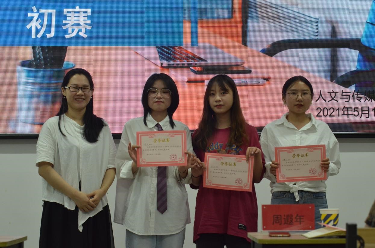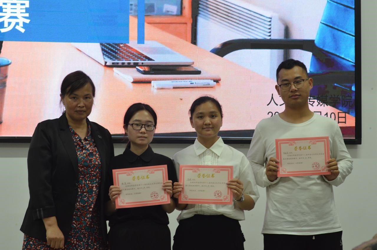 比赛结束后,夏红星老师表达了对同学们的期望并对大家的表现给予了高度赞扬。“闻道有先后,术业有专攻”,夏老师认为每位同学都各有所长,但阅历尚浅,认识问题的深度还有待加强,基本功也需要勤锻炼。随后,周遐年老师进行了讲话。周老师希望同学们对后续比赛做足准备,同时鼓励大家积极参加各类竞赛以增加阅历,拓展眼界。评委老师点评结束后,主持人宣布了此次比赛的结果。本次比赛荣获一等奖的同学有:郑圆梦、盛艳红;荣获二等奖的同学有:喻潇、况嘉诚、杨婷;荣获三等奖的同学有:邓慧丹、吴星仪、叶贝贝。