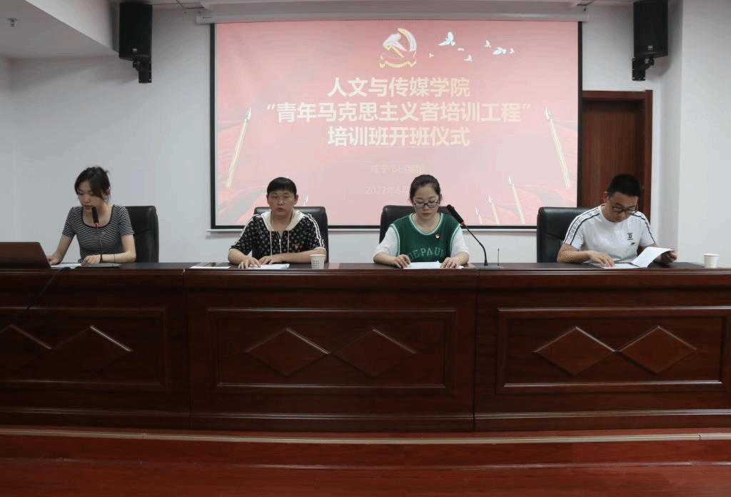 6月17日下午,tyc7111cc太阳成集团于咸宁市档案馆举行2022年“青马工程”培训班开班仪式。院党委副书记佘翠华、学工办副主任丁爽、学生支部书记郭广明、院团委书记肖乐维以及院“青马班”第五期培训班全体学员共同参会。