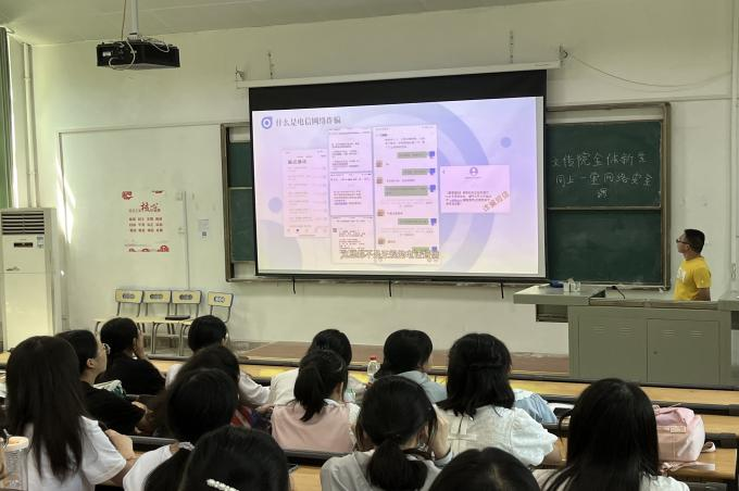 课上,国家反诈中心民警刘明竹详细讲解了电信网络诈骗的概念、高发类型和防范举措,通过电信网络诈骗案例,提醒师生要提高安全防范意识,并向大家介绍防骗技巧“三不一多”原则,即未知链接不点击、陌生来电不轻信、个人信息不透露、转账汇款多核实;哈尔滨师范大学辅导员刘国权结合校园高发的网络诈骗案件的类型,深入分析诱发大学生电信网络诈骗的内在和外在原因,引导同学们加强法制学习、保护个人信息、树立正确观念,主动防范电信网络诈骗,维护网络安全。