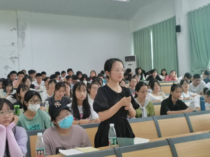 肖老师从中国共产主义青年团章程总则、共青团的组织制度、入团的基本要求等方面展开,以身边优秀案例为切入点,带领同学们认真学习共青团章程,通过讲故事的方式让新生更好地理解共青团组织,用红色精神启迪新生在新时代中发展自我,以饱满的热情引领同学们积极进步。