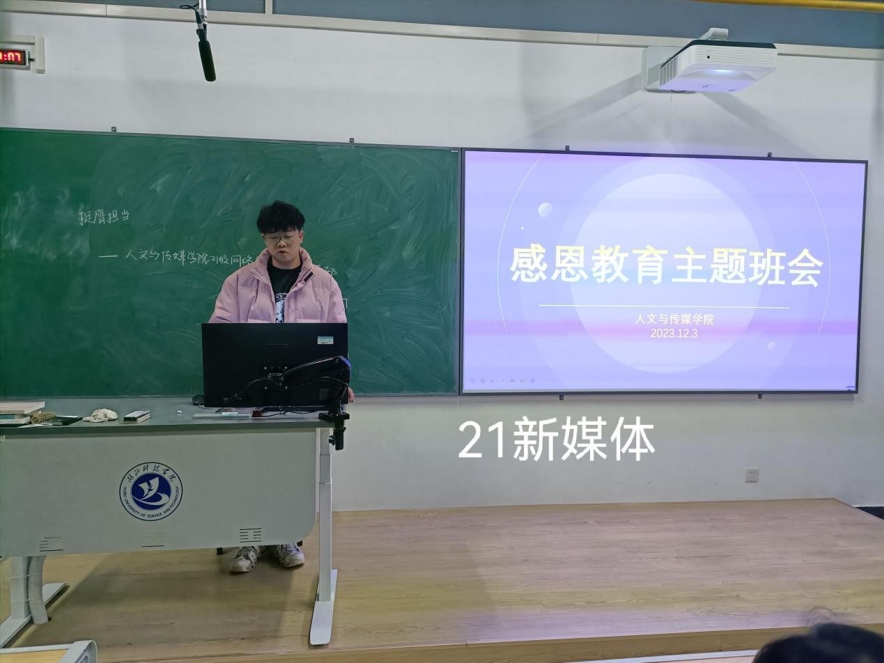 正值2023年秋季国家助学金、国家励志奖学金发放之际,为进一步加强学生思想道德教育,引导学生感恩于心、感恩于行,培育学生良好的道德风尚。12月3日,我院各班在考评教室开展了励志-感恩教育主题班会。班会由各班班长主持,全体同学参加。