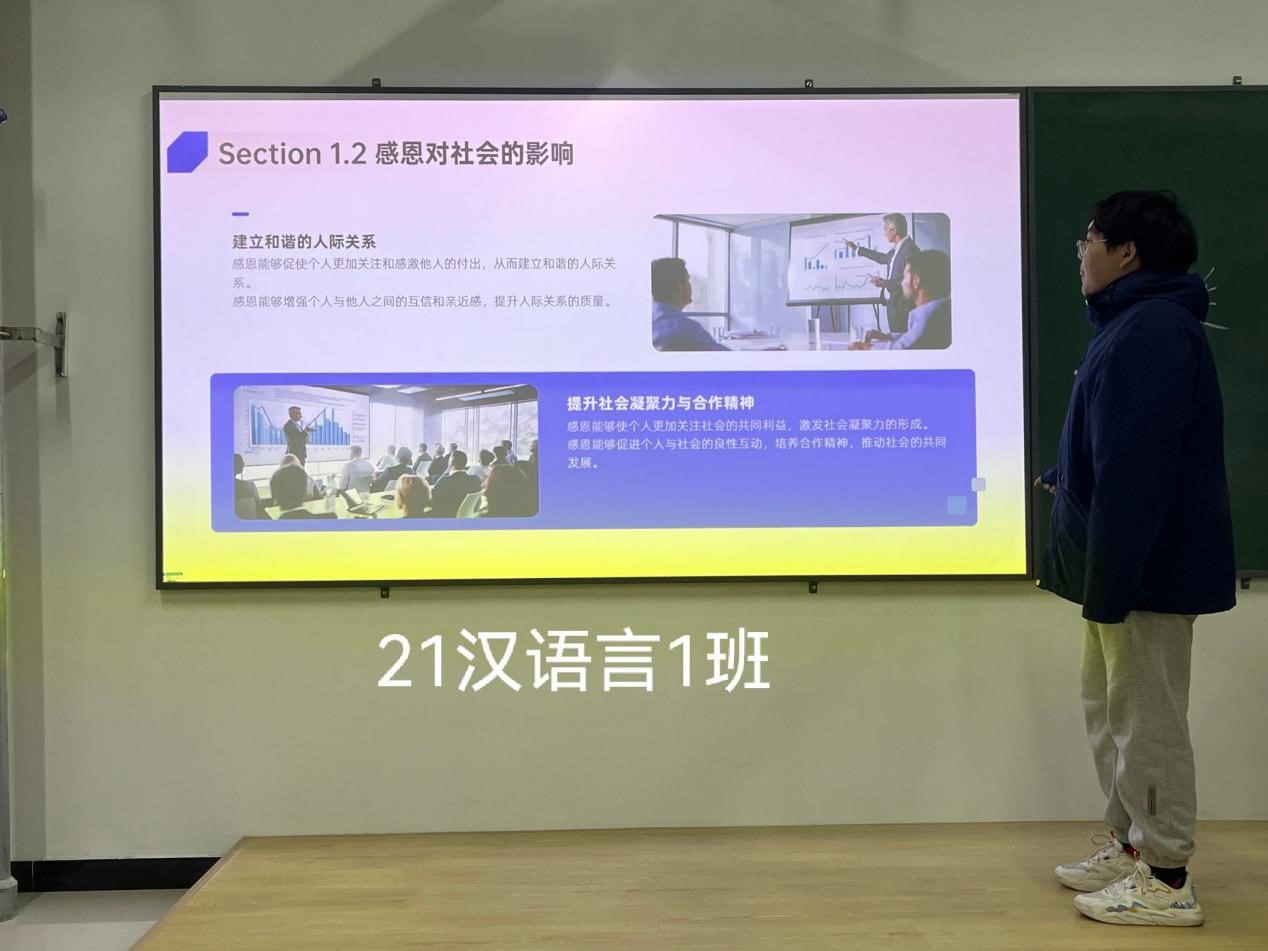 班会后,同学们纷纷表示对感恩有了更进一步的思考与体悟:感恩不仅要在思想上,更要在行动上体现出来,要付诸实践;感恩孕育于自古以来的家庭和中国优秀传统文化之中,是中华儿女割舍不掉的品德,也是当代青年不可或缺的品质。