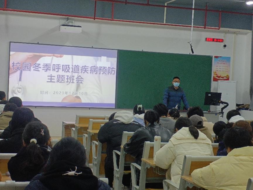 冬季是呼吸道传染病高发期,学校是人群高密集场所,学生群体抵抗力较弱,为普及呼吸道疾病预防知识,提高同学们对疾病的预防意识。12月10日晚,我院各班在考评教室开展了“校园冬季呼吸道疾病预防”主题班会。班会由各班班主任老师主持,全体同学参加。