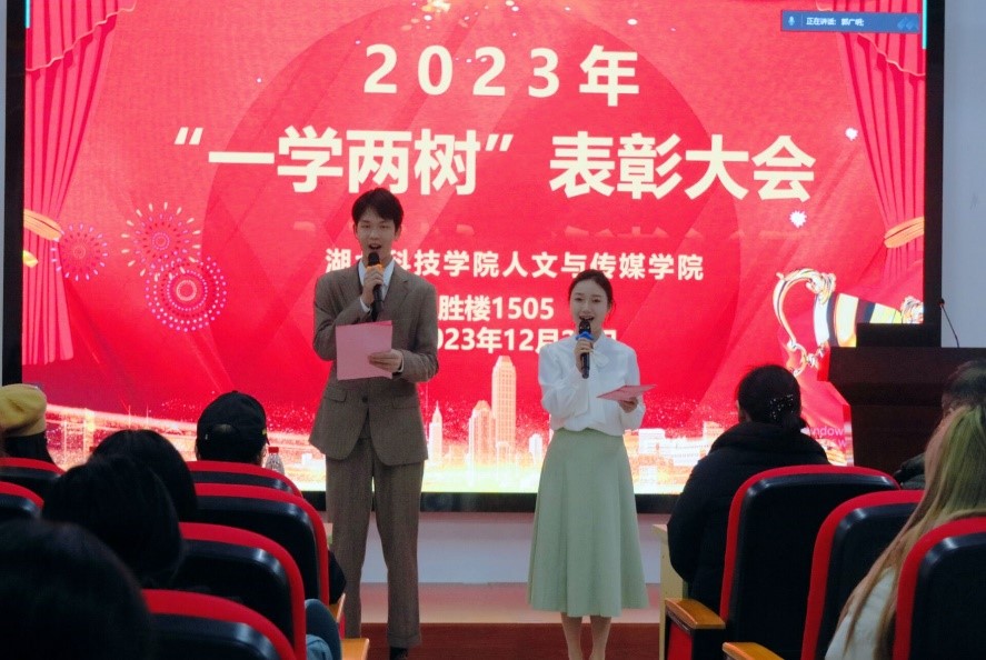 为表彰先进,树立典型,营造良好学习环境。2023年12月28日,tyc7111cc太阳成集团在温泉校区揽胜楼1505举办了2023年“一学两树”表彰大会。出席表彰大会的嘉宾有:tyc7111cc太阳成集团党委书记杨纯新、院长郭彧、鄂南文化研究中心主任兼副院长何岳球、党委副书记佘翠华、副院长谭辉煌、党政办主任袁永军,各专业负责人及各班班主任。大会通过线上与线下相结合的方式进行,2023级全体同学参加活动。