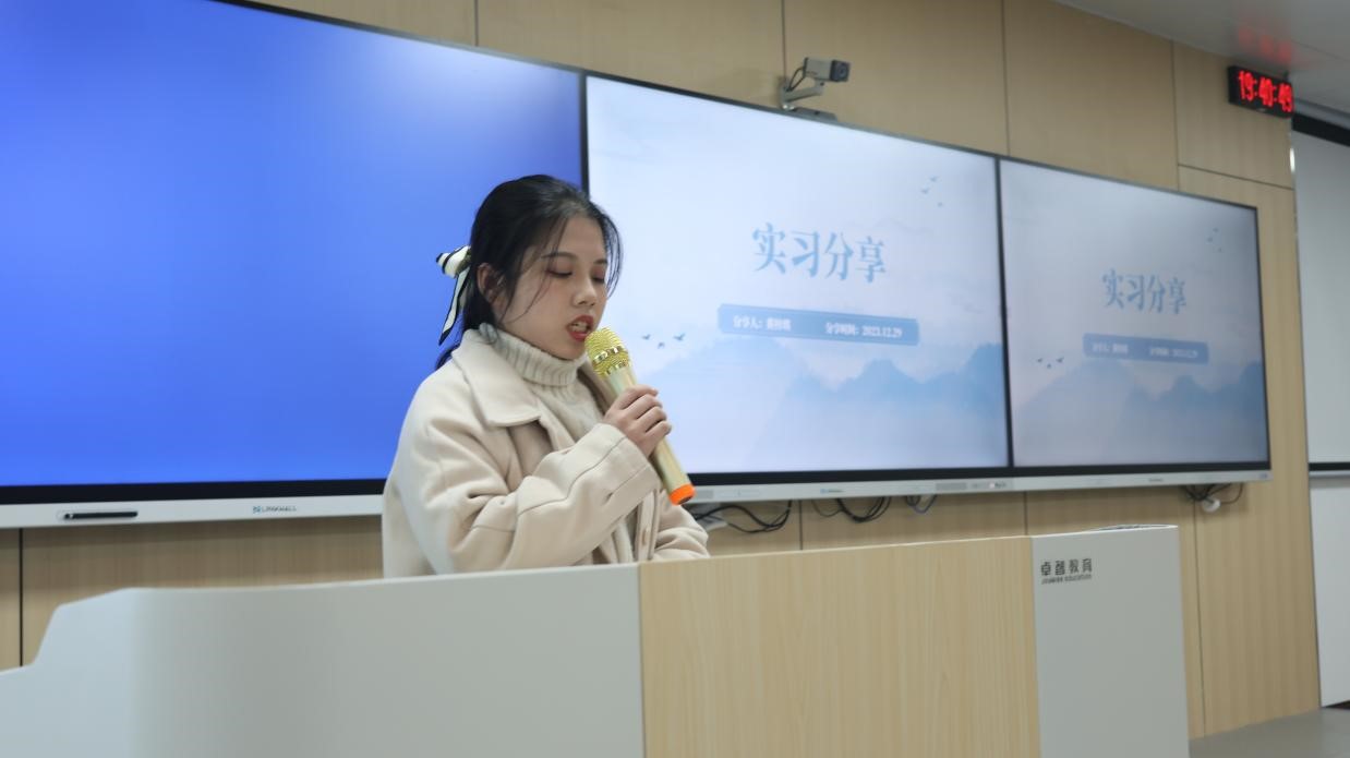会议开始,20级汉语言文学1班曹晓东、何鲲鹏,20级汉语言文学2班黄子琪、王雪婷,20级历史学周圆圆,20级网络与新媒体王蔚,20级广播电视编导陈启七位同学进行了实习经验分享。师范生代表们表示通过实习提升了自己的教学技能和班级管理的能力。王蔚同学表示在实习中磨练了意志,吸取了教训,提高了本领,陈启同学重点分享了在湖南卫视的实习体会,强调实习锻炼了他吃苦耐劳的精神和抗压的品质。