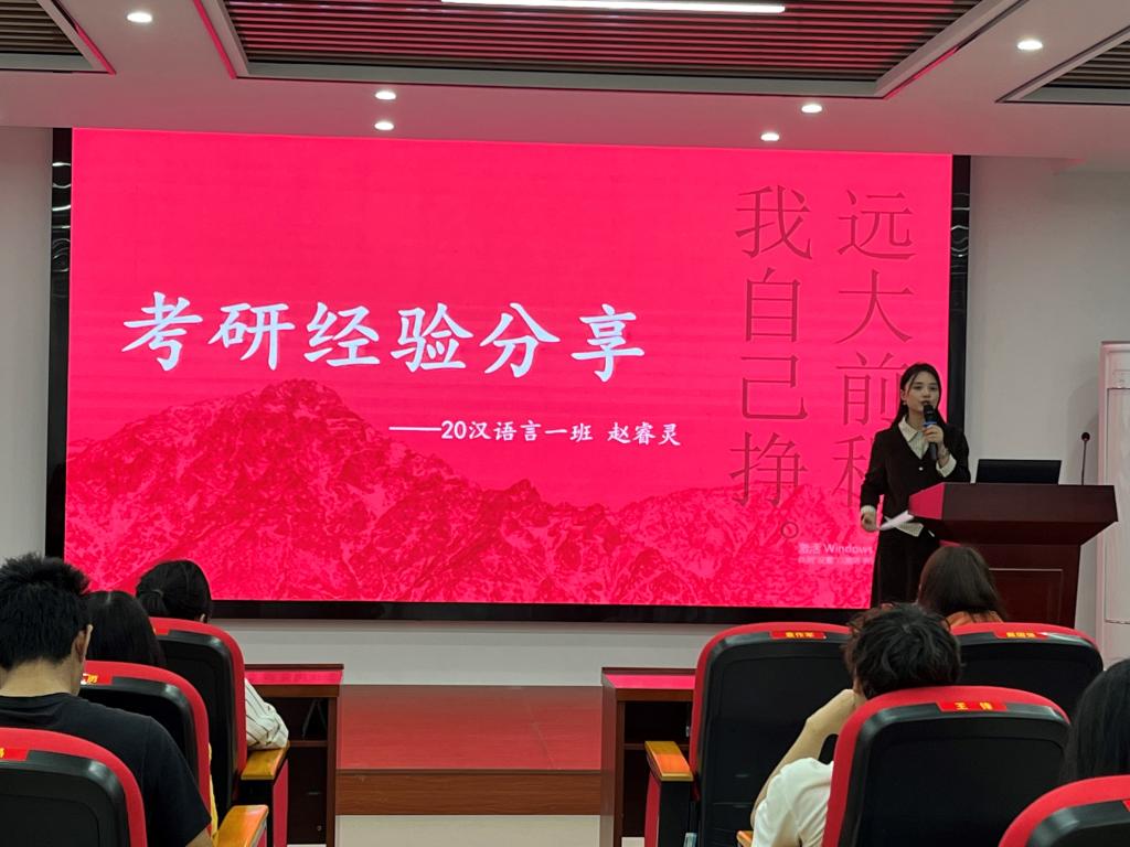 为了进一步加强同学们对研究生入学考试的认识,提高学生的考研热情,增强学生考研信心,明确考研目标,掌握相关考研技巧。4月24日晚,我院在揽胜楼1505举办“筑梦考研,扬帆起航”考研经验分享会。辅导员郭广明及2021级、2022级学生代表100余人参加活动。