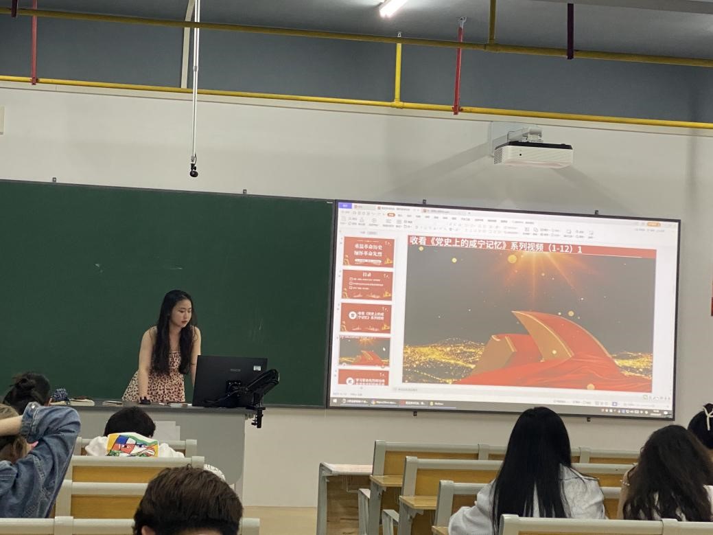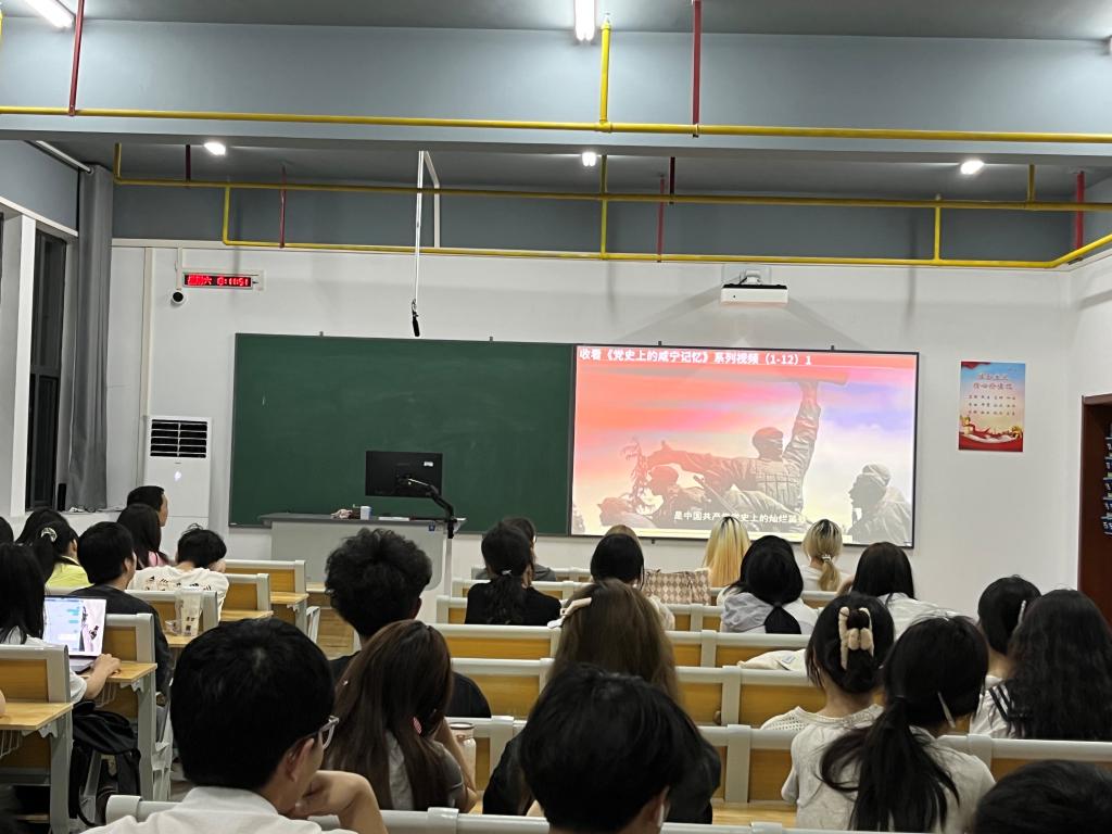 班会上,班长带领同学们一起观看了《党史上的咸宁记忆》系列视频。随后,各班班长为同学们讲解了何功伟烈士的英勇事迹,重点讲述了何功伟烈士在面对敌人的威逼利诱下仍然坚定不屈,哪怕是家人的性命也不能动摇他对党的忠诚,临死也不向敌人下跪,保持共产党人的气节。班会上,全体同学还收听了由湖北省委宣传部指导,湖北广播电视台、咸宁市委宣传部联合出品的广播剧《生之歌》,进一步了解革命先辈们不服输、不认输,坚决斗争的英勇行为和伟大的爱国主义精神。2022级汉语言文学二班的钟晴同学表示:“讲到革命先烈,我脑子里一下就能浮现许多伟大的人物姓名,但关于咸宁的革命前辈,我确实知之甚少,但通过这次的班会学习,我增加了不少关于咸宁先烈的知识,他们的英勇献身换来了我们和平安定幸福的生活环境,对于学习这种精神,我们不仅要知道,更要落实到具体行动上去,明白了当今的幸福生活来之不易,我们更会珍惜当下,不断学习,做对社会、国家有用的人。”