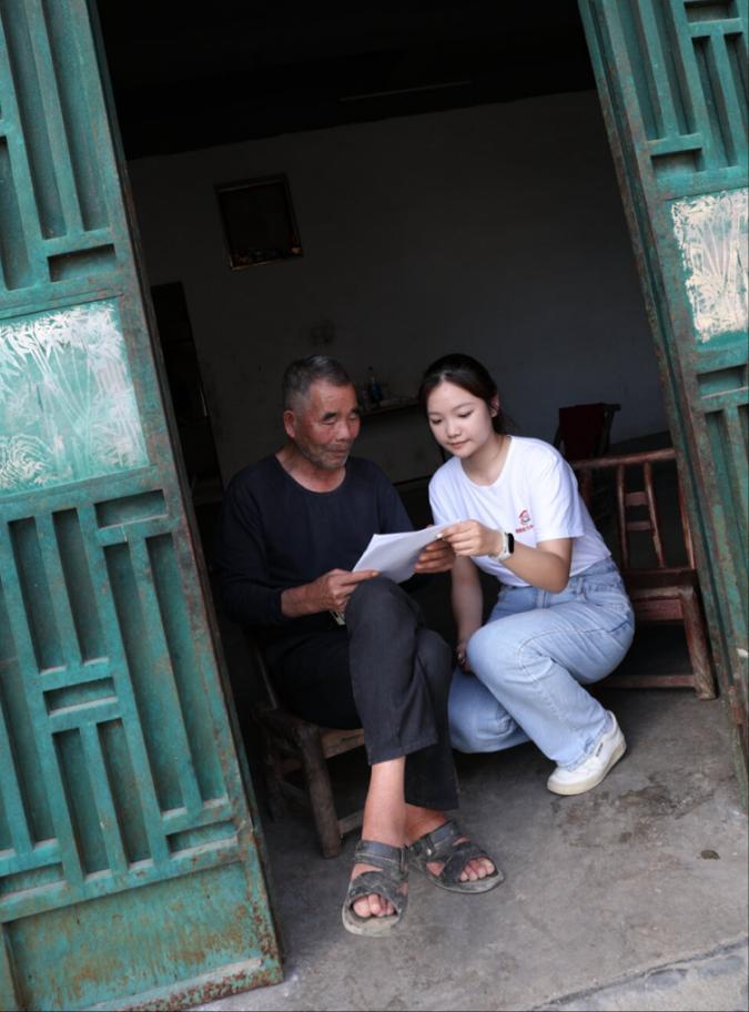 非遗馆、药谷、流水、田野,宣讲员们走进乡间,感受瑶族村纯净的自然风光,于村落各户人家中展开走访调查。大学生宣讲员们向村民们介绍“推广普通话对于乡村振兴的重要性”,并根据当地实际情况做问卷调查,用真实数据为后续的工作做准备。