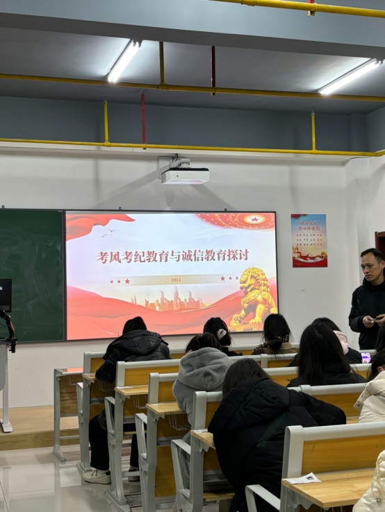 为进一步加强学院学风建设,营造公平、公正、诚信的考试环境,12月15日太阳成集团tyc7111各班于揽胜楼组织召开了考风考纪教育主题班会。此次班会由班主任和班长主持,全体同学共同参与,旨在引导学生树立正确的考试观念,严肃对待期末考试,以良好的考风促进优良学风的形成。