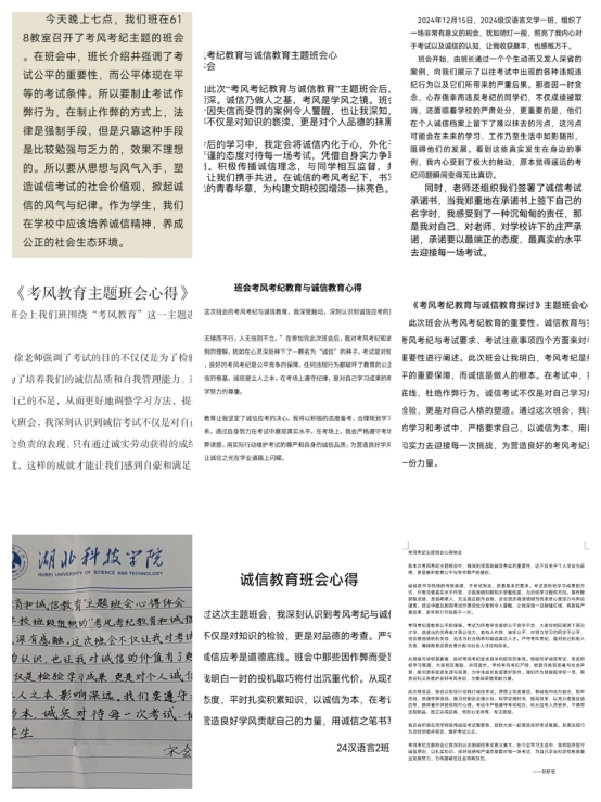 此次考风考纪教育主题班会的成功召开,在班级内营造了浓厚的诚信考试氛围,有效增强了同学们的自律意识和诚信观念。相信在全院师生的共同努力下,学院定能在期末考试中呈现出良好的考风考纪,为推动学院学风建设迈向新台阶奠定坚实基础。