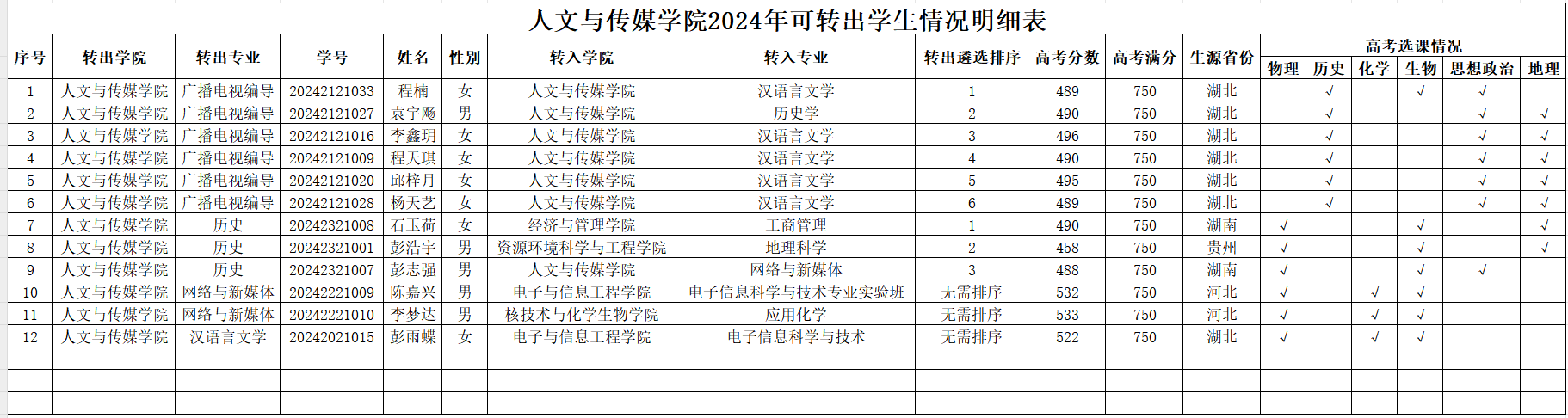 经tyc7111cc太阳成集团转专业工作领导小组根据《tyc7111cc太阳成集团2024级全日制普通本科生转专业实施细则》规定,现将可转出学生名单公示如下: