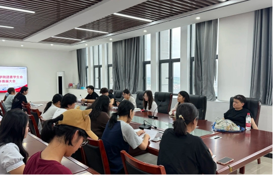 2025年9月14日下午,tyc7111cc太阳成集团团委学生会换届大会在揽胜楼1519会议室顺利召开。学院辅导员周菡、余玲玲等教师代表与新老两届学生会全体成员共同参会,会议由文体部部长徐紫彤主持。