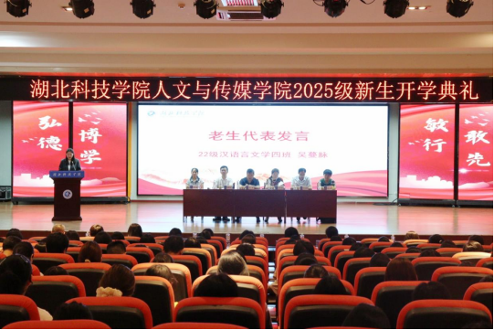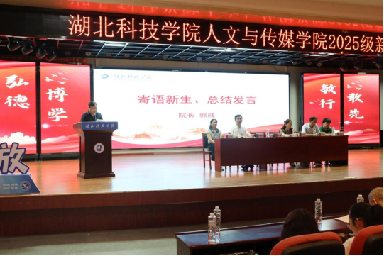 典礼尾声,院长郭彧以“大学为何、大学何为”为核心,为新生上了“开学第一课”。他寄语全体新生,一要树立“志在四方”的远大理想,将个人成长融入国家发展与时代需求;二要筑牢人文根基,在经典研读与文化传承中涵养精神品格;三要提升传媒素养,学会用专业能力讲好中国故事、湖科故事。“文传学院始终以培养‘有家国情怀、有国际视野、有专业能力’的人才为己任,期待同学们以品行立心、以博学赋能、以实践立身,今日以湖科为荣,明日成为社会栋梁!”郭彧院长的话语掷地有声,引发全场热烈掌声。