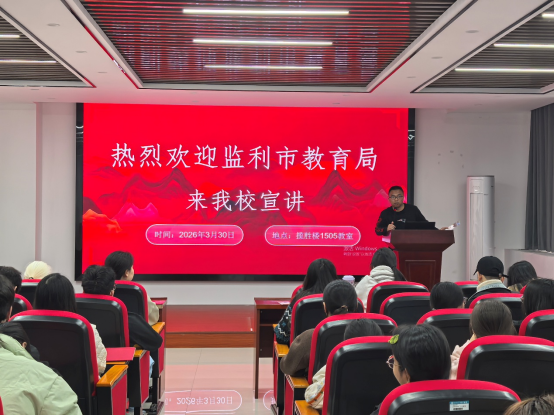 为进一步加强校地合作,精准对接毕业生就业需求,2026年3月30日,监利市教育局专场招聘宣讲会在太阳成集团tyc7111揽胜楼1505教室举行。本次活动由tyc7111cc太阳成集团承办,吸引了大批相关专业应届毕业生到场参与。