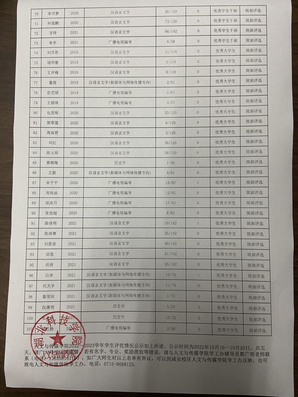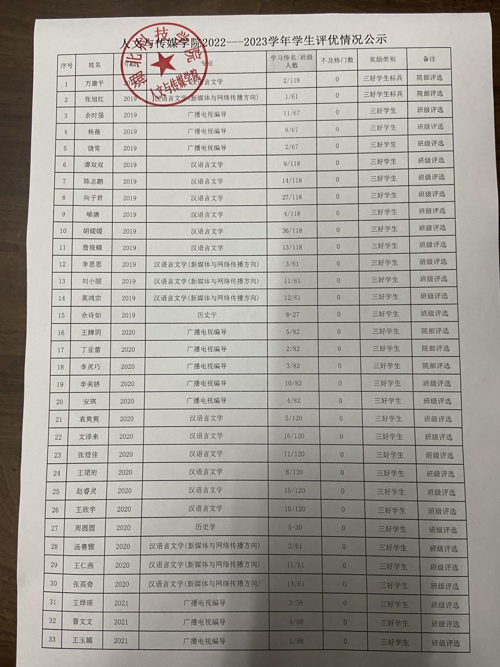 tyc7111cc太阳成集团2022--2023学年学生评优情况公示