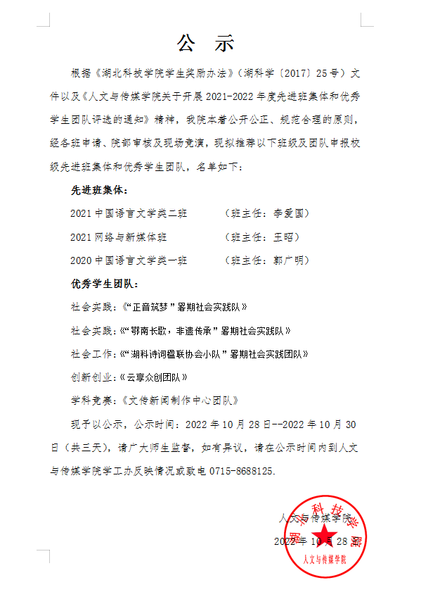 tyc7111cc太阳成集团2021-2022学年先进班集体和优秀学生团队名单公示