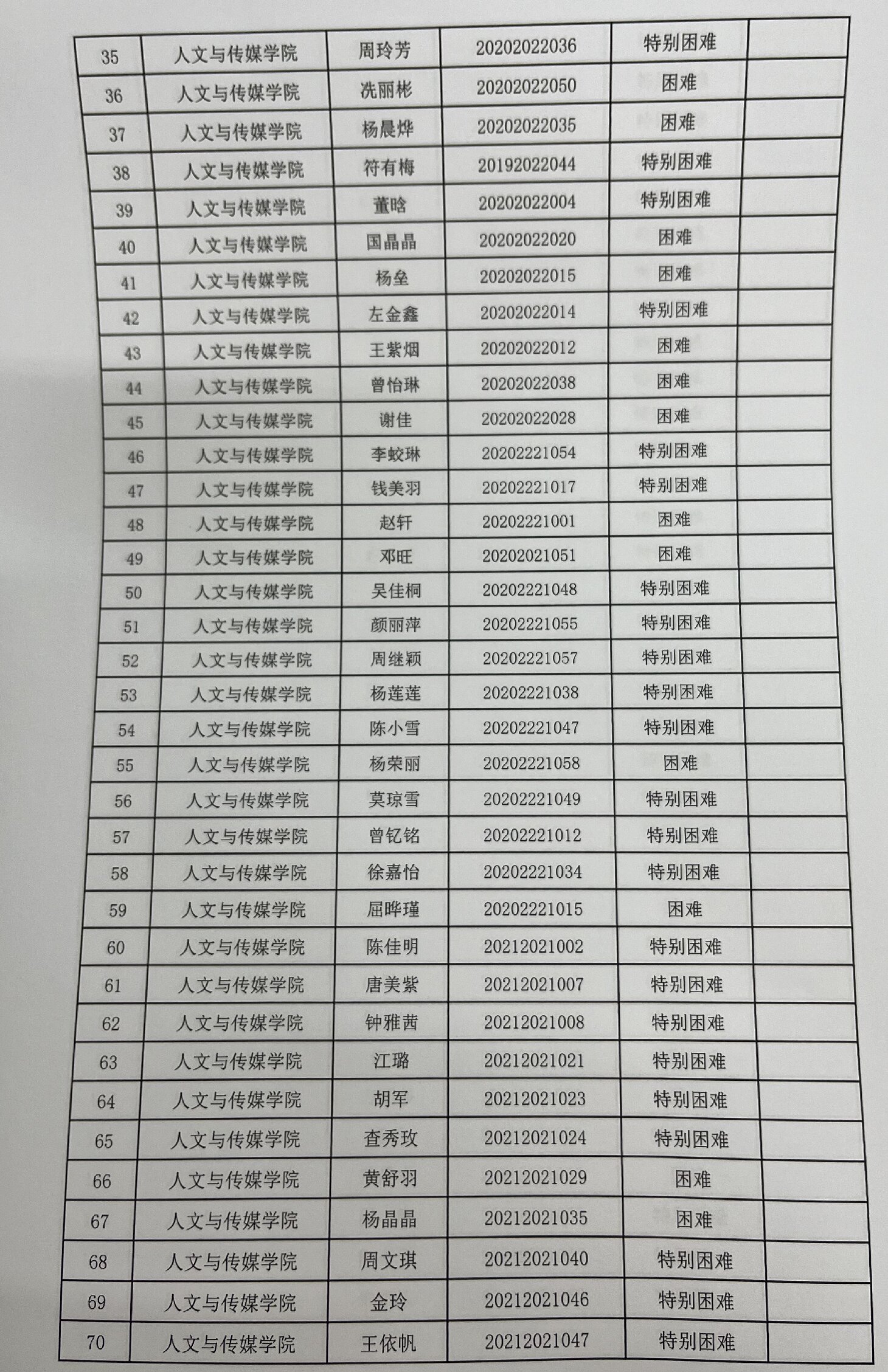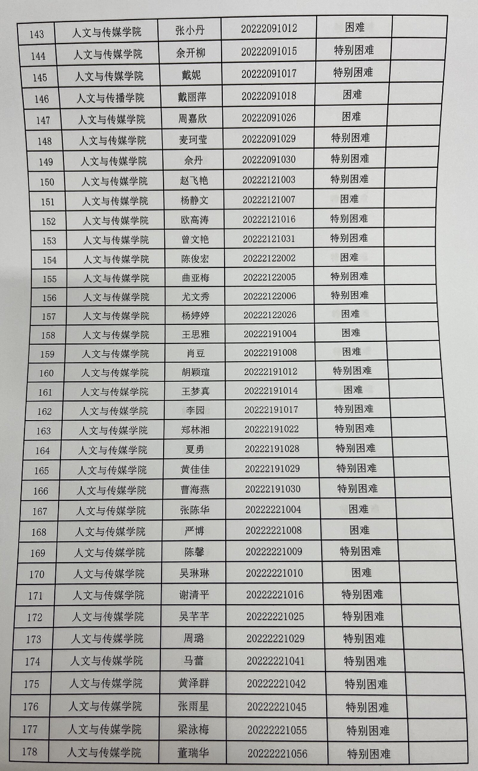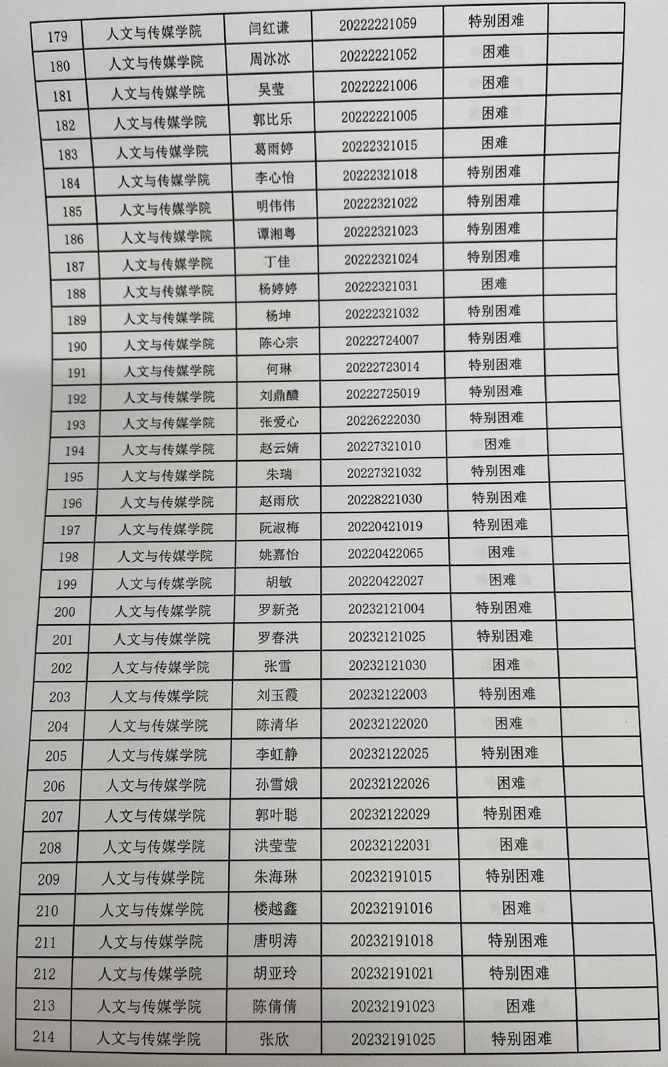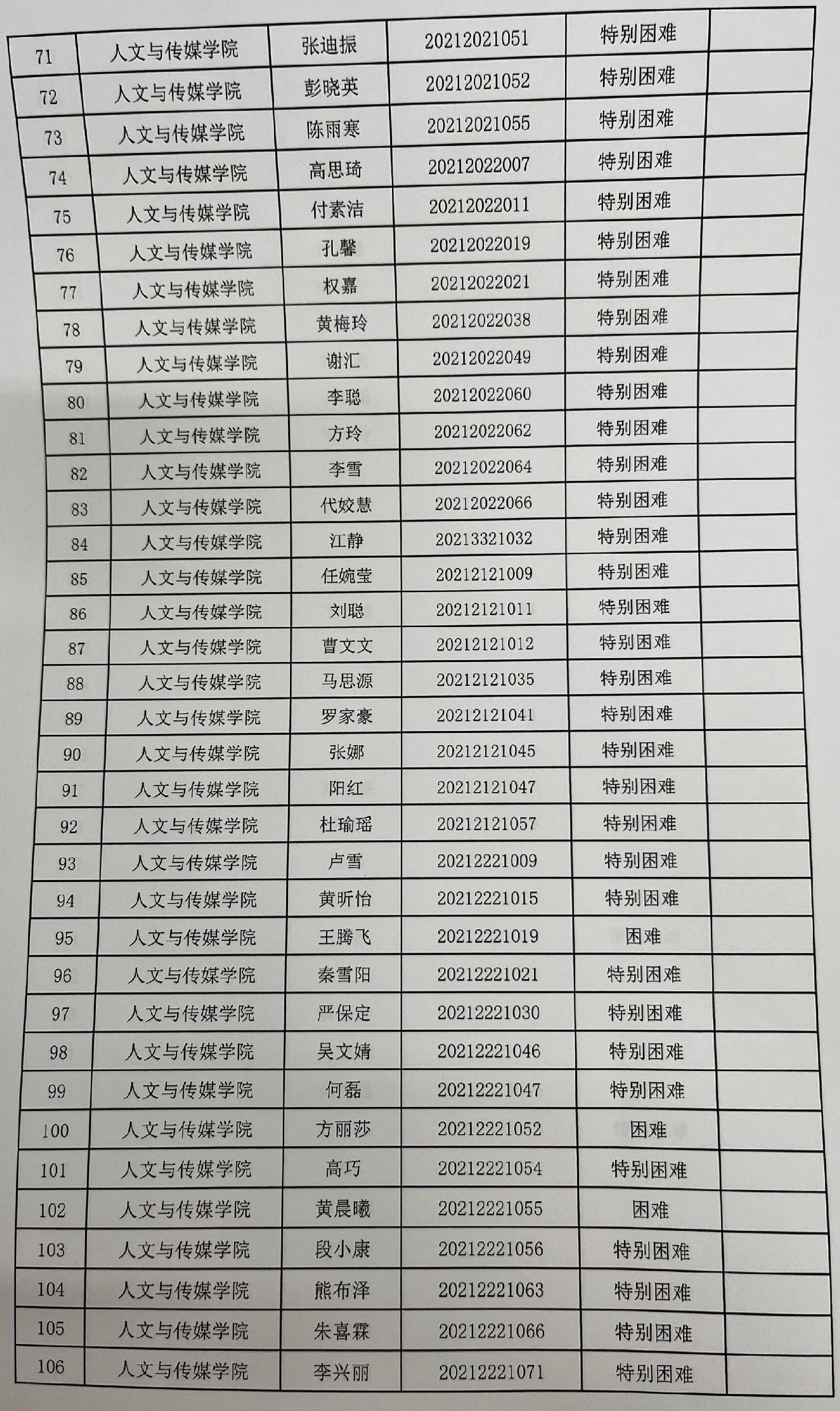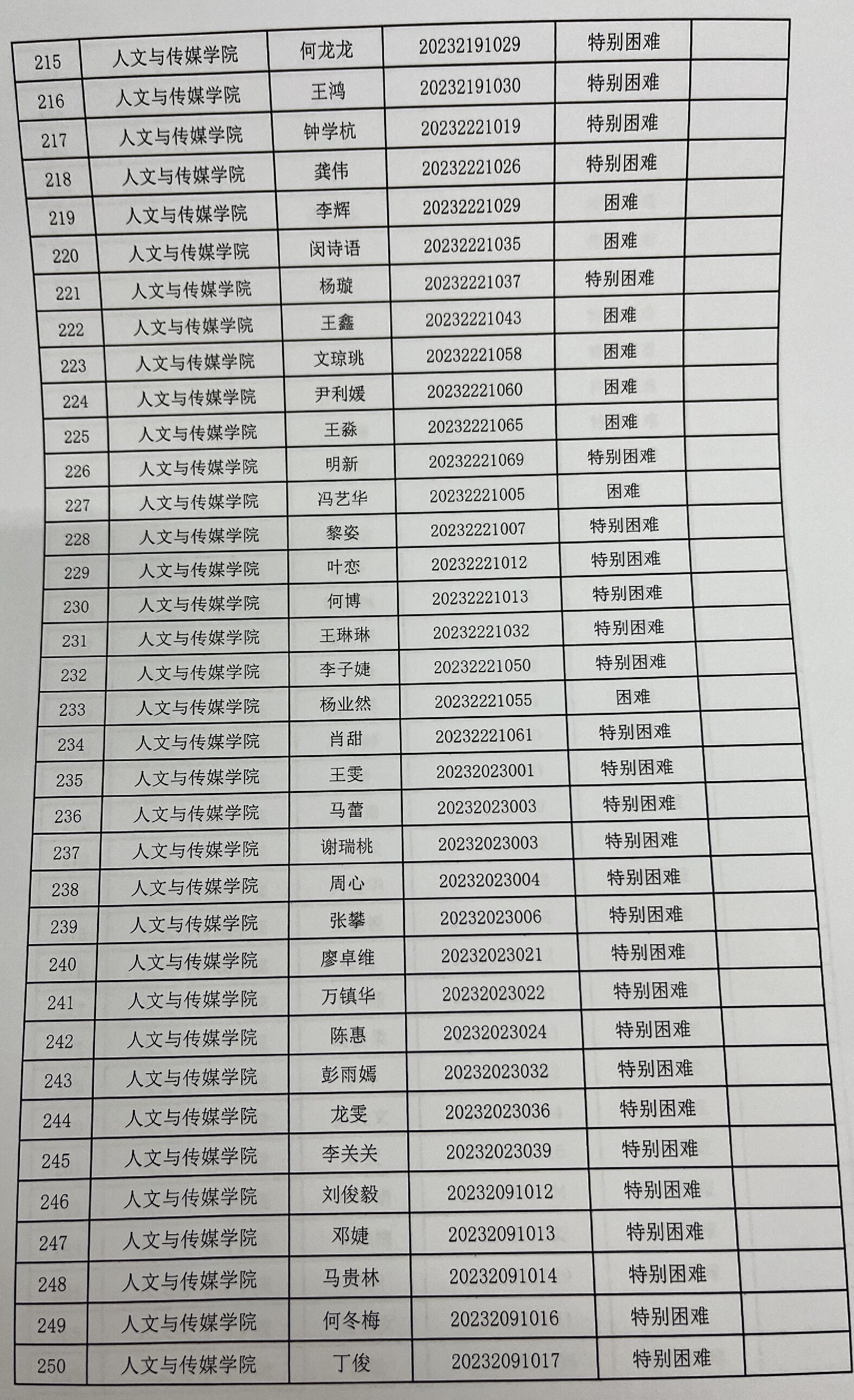 tyc7111cc太阳成集团2023年家庭经济困难学生认定名单及分班级汇总表公示