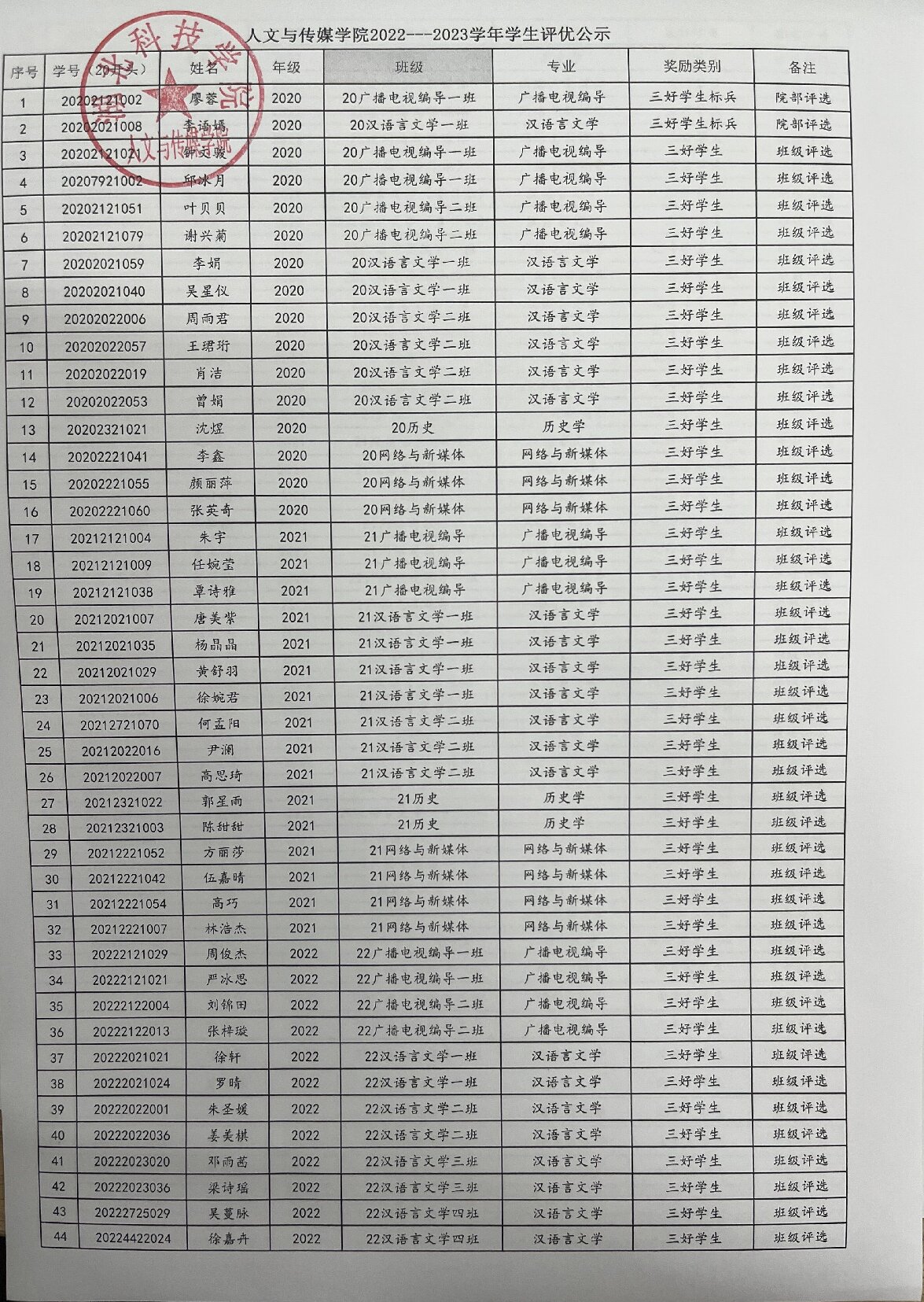 tyc7111cc太阳成集团2022-2023学年学生评优公示