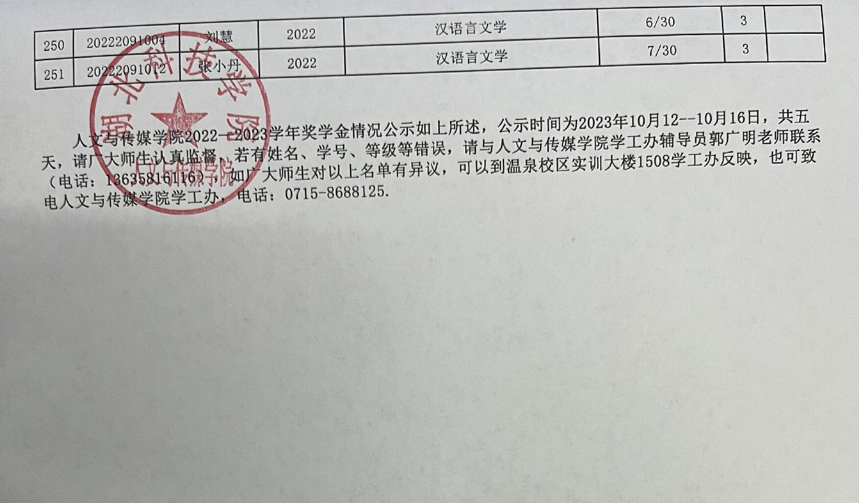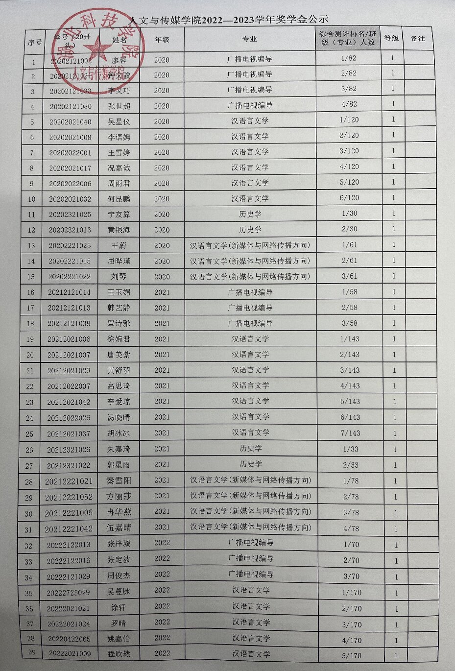 tyc7111cc太阳成集团2022-2023学年奖学金公示