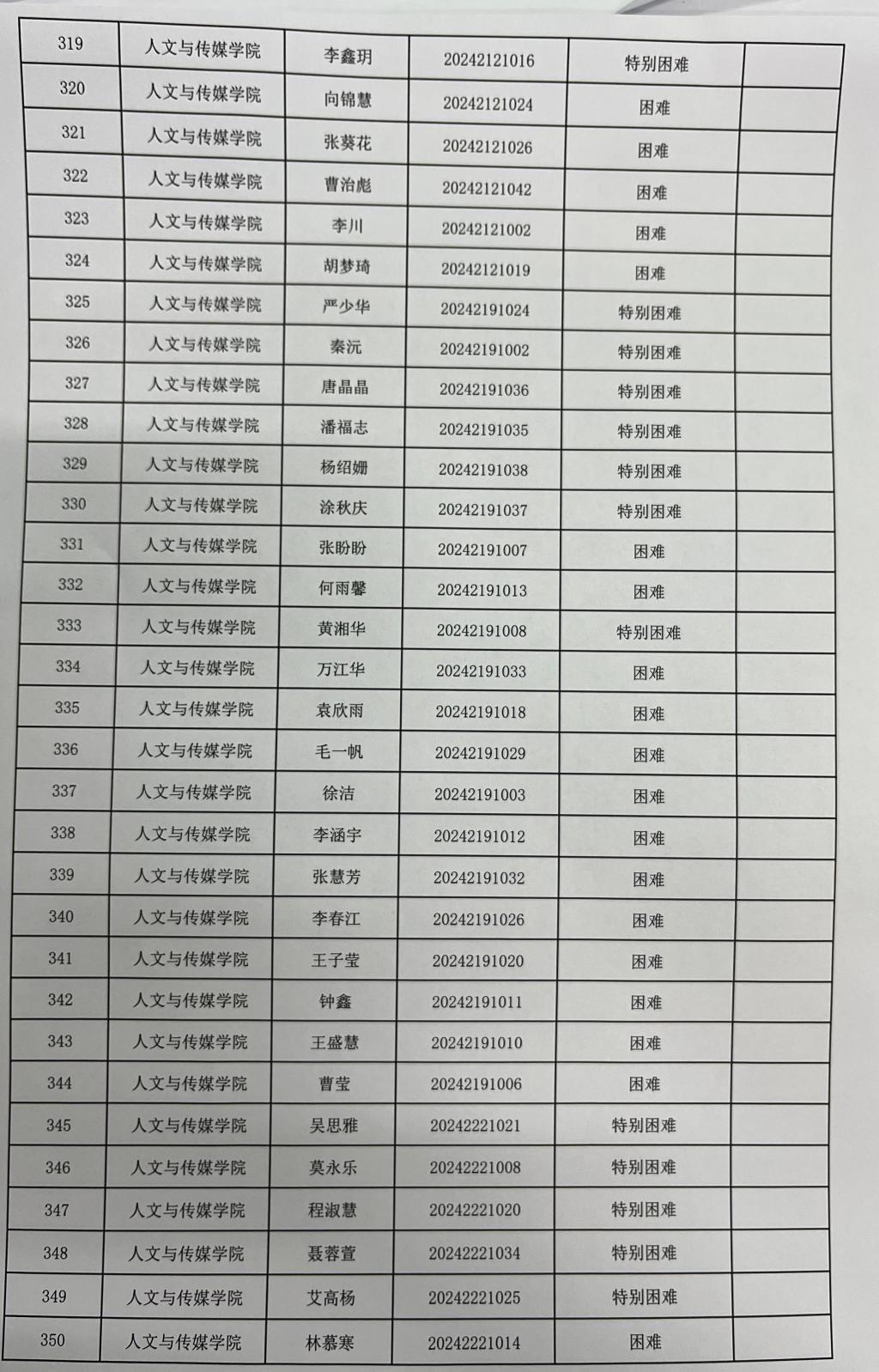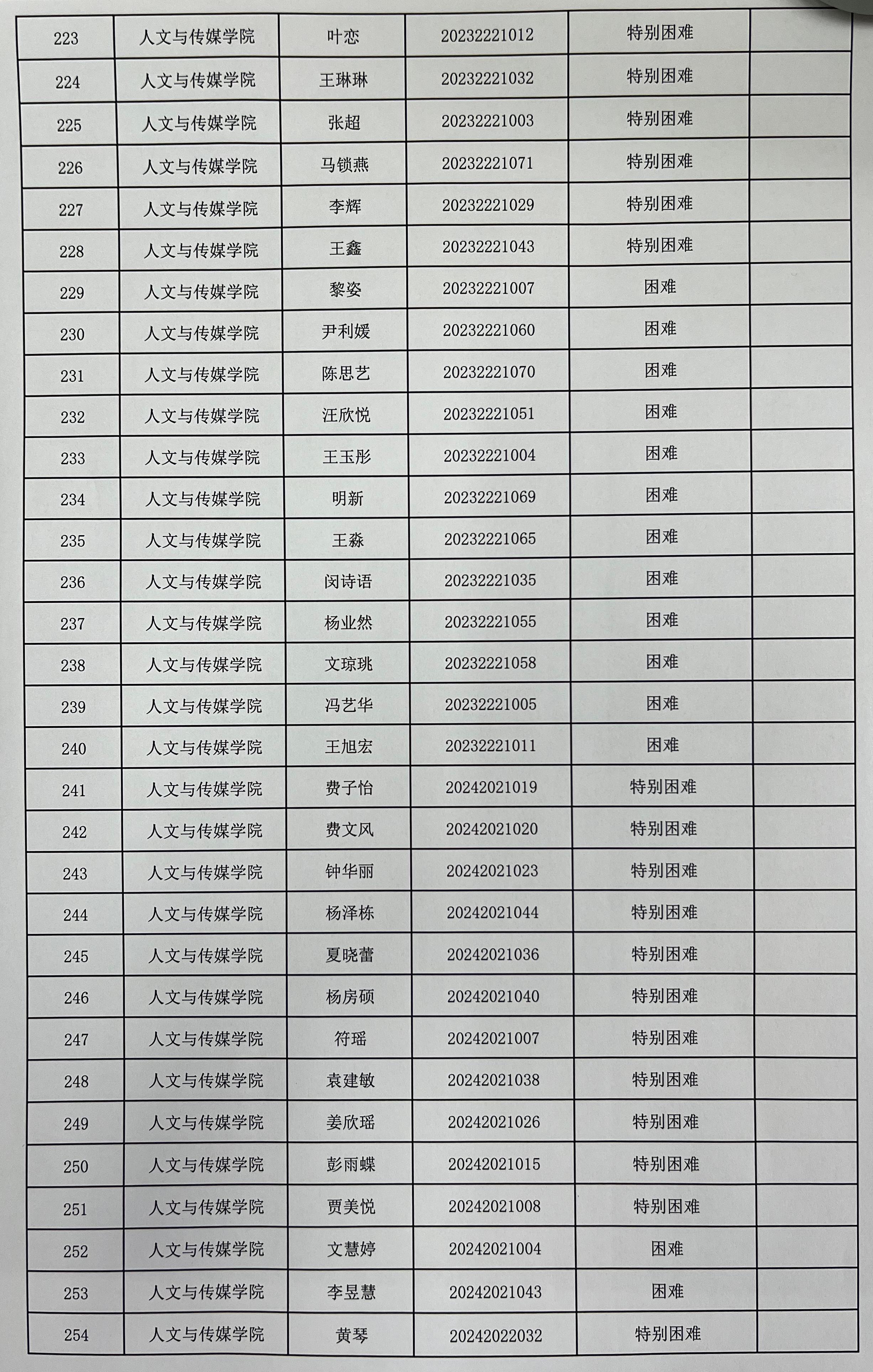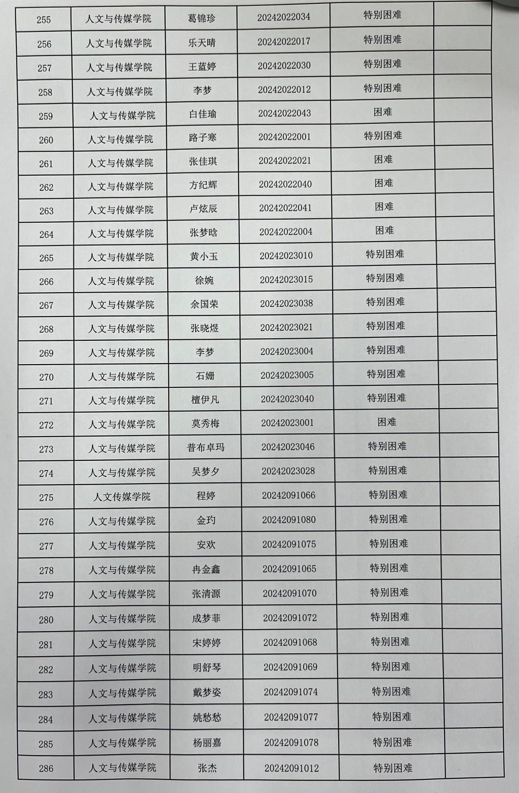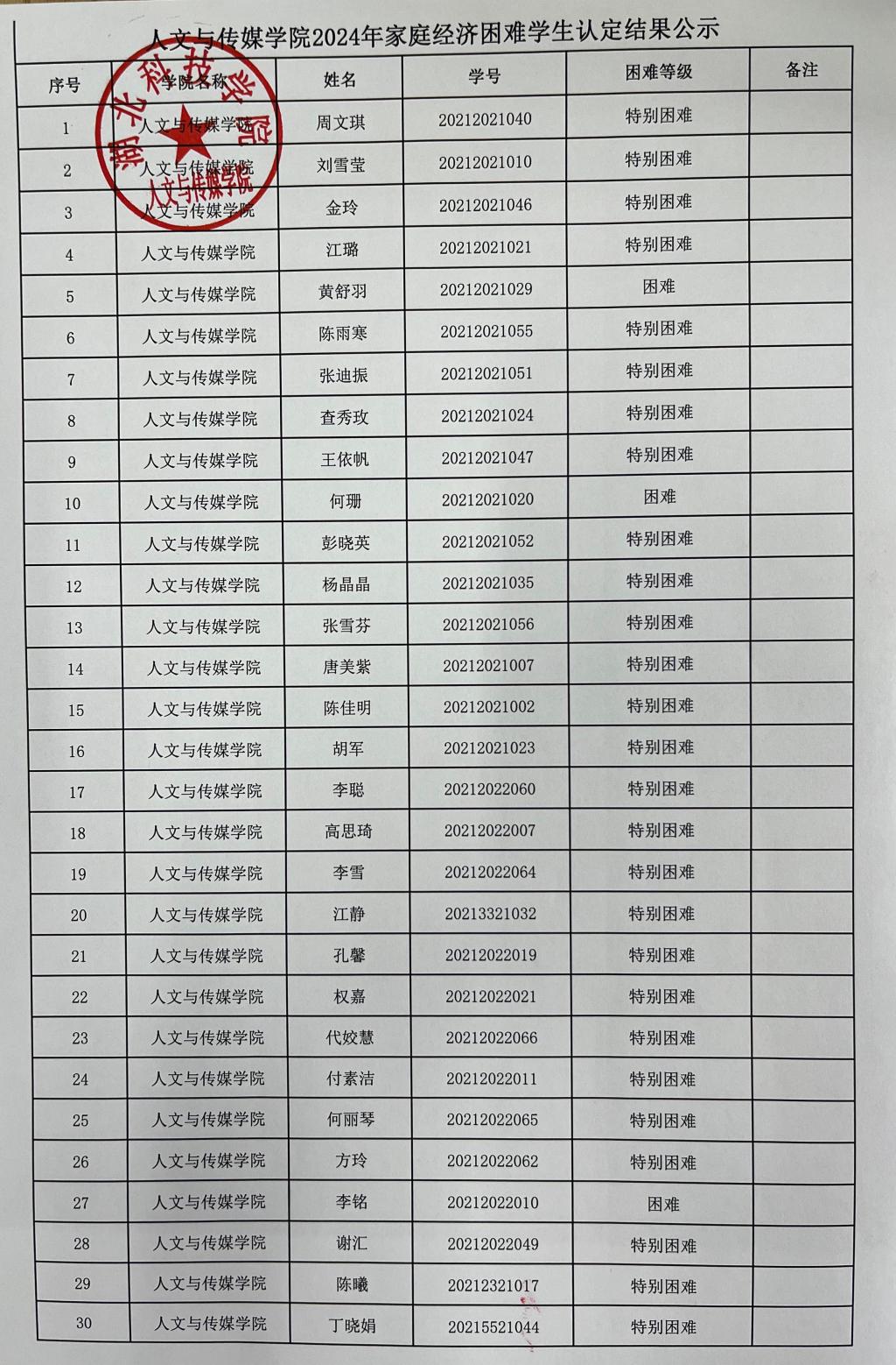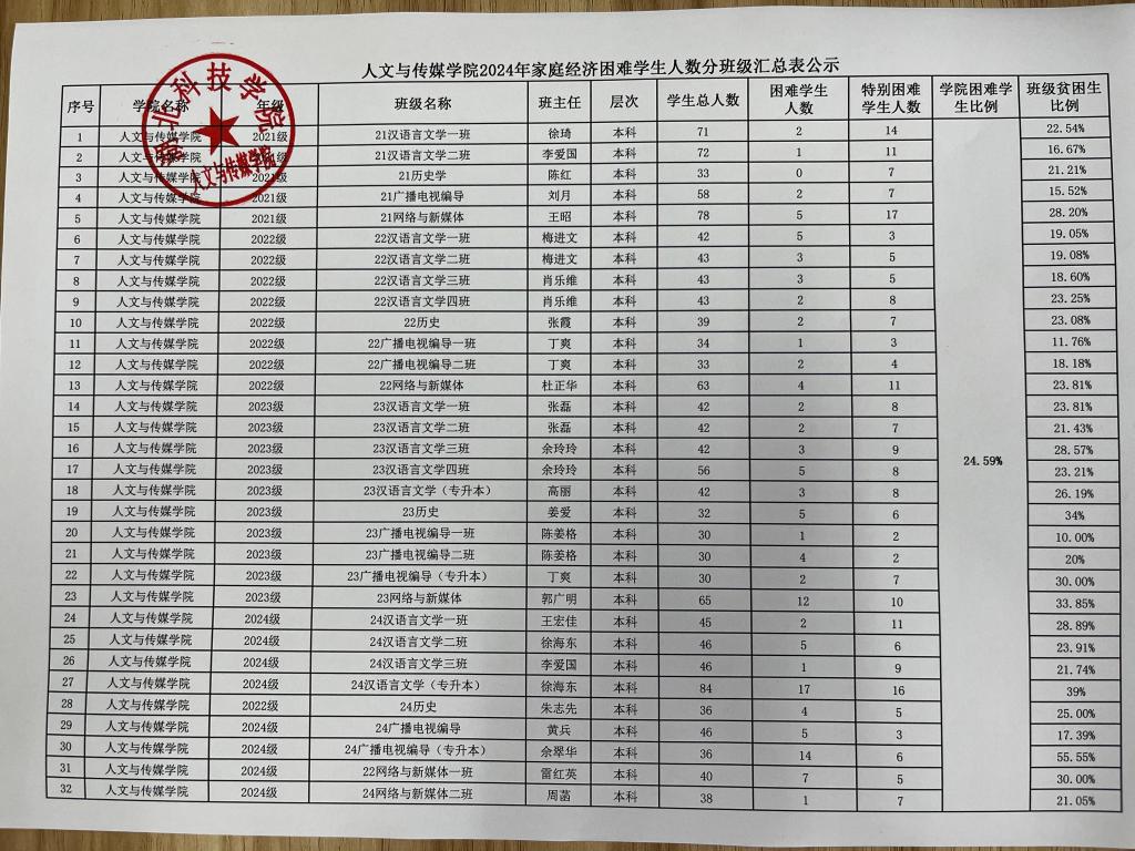 tyc7111cc太阳成集团2024年家庭经济困难学生认定结果公示及分班级汇总表公示