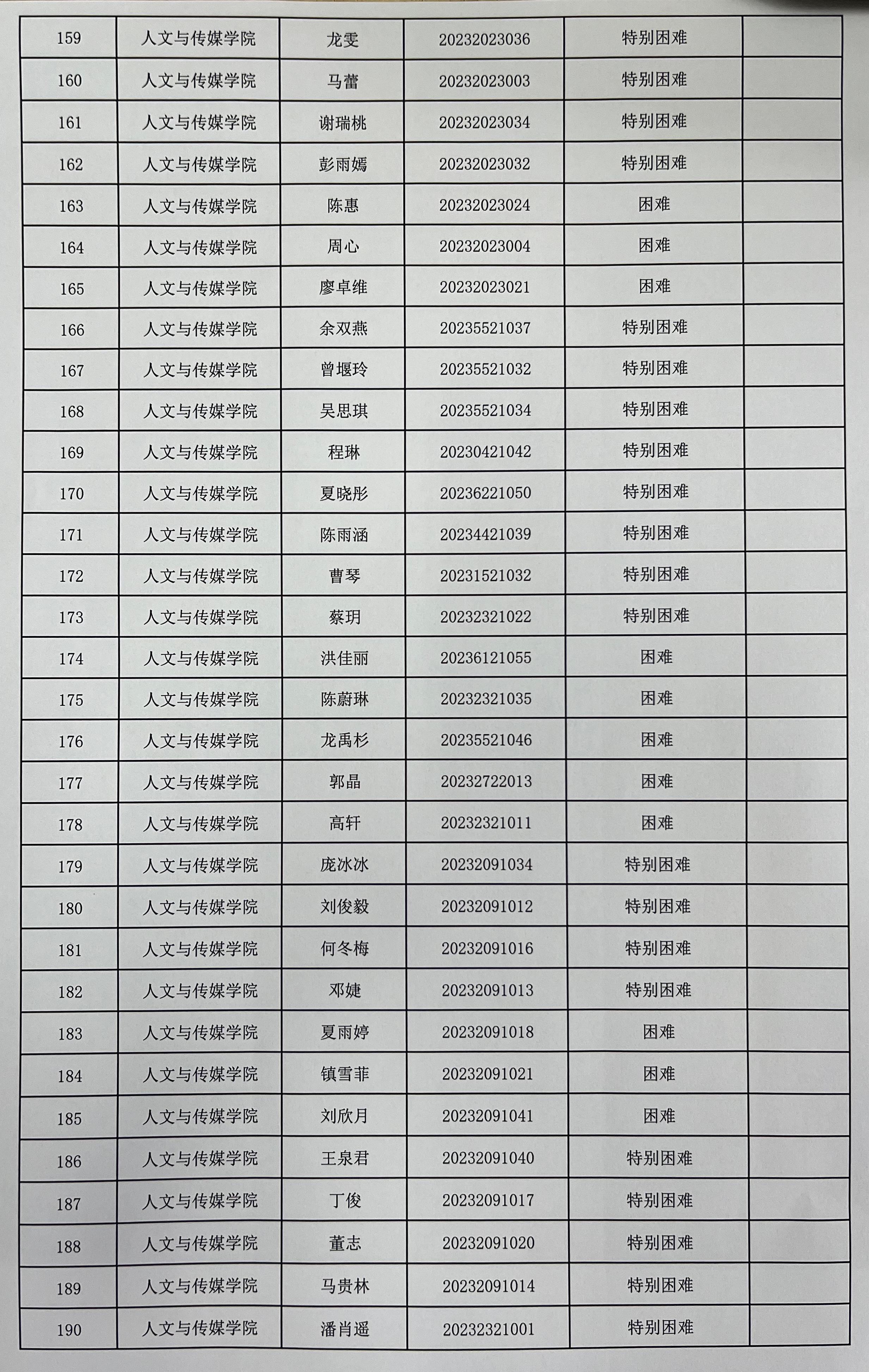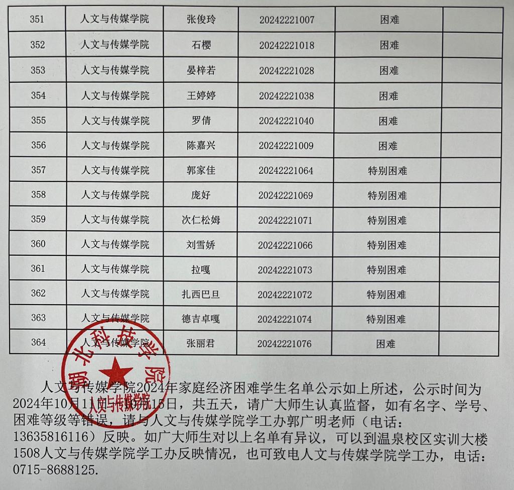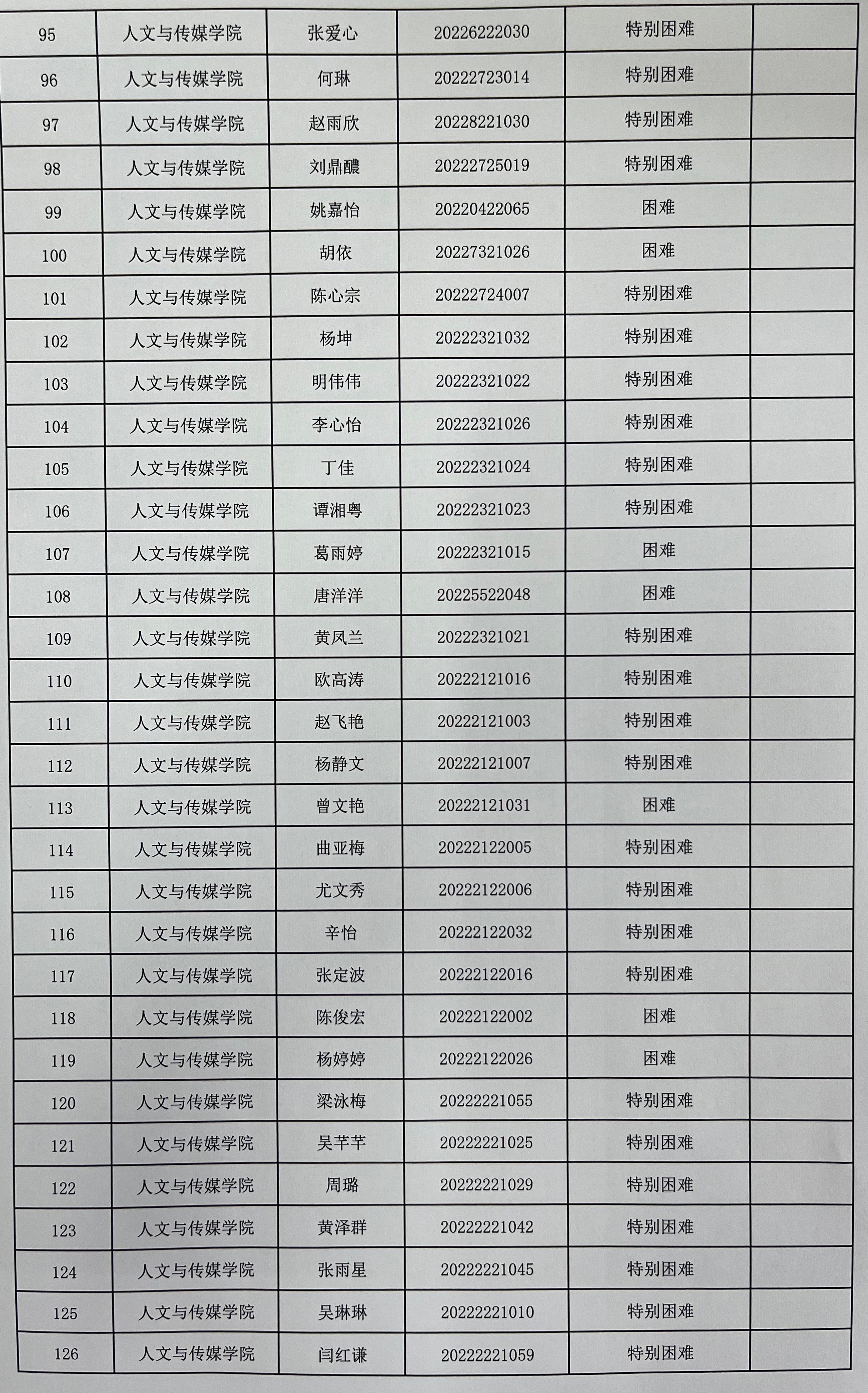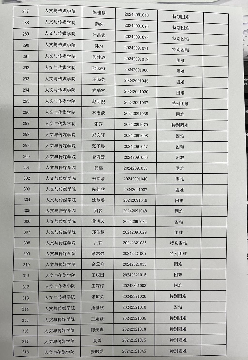 tyc7111cc太阳成集团2024年家庭经济困难学生认定结果公示及分班级汇总表公示