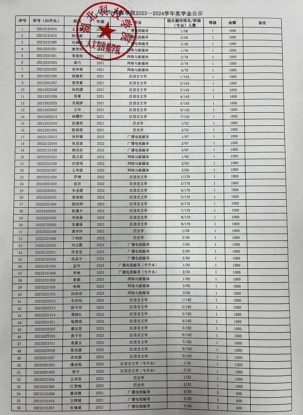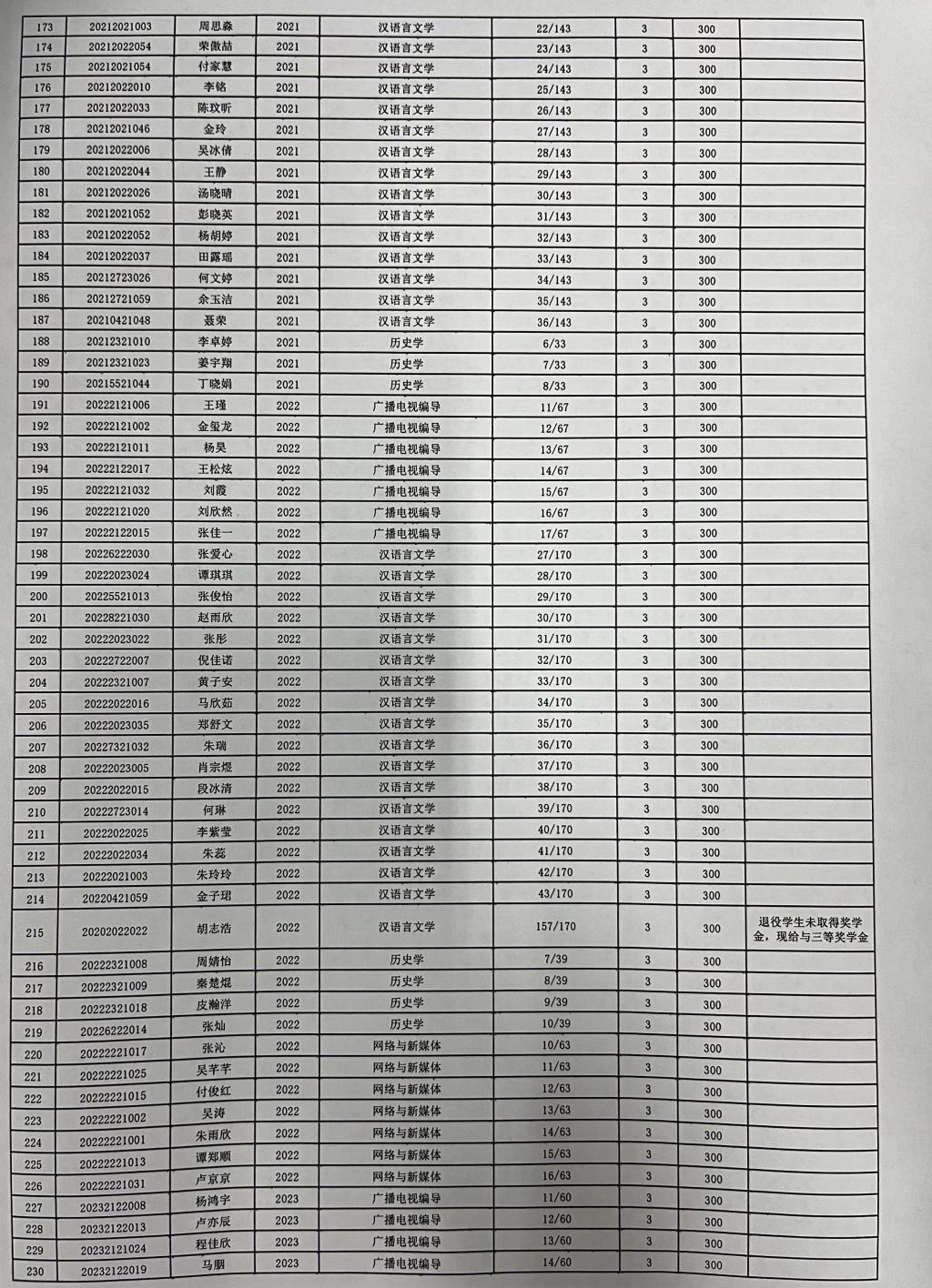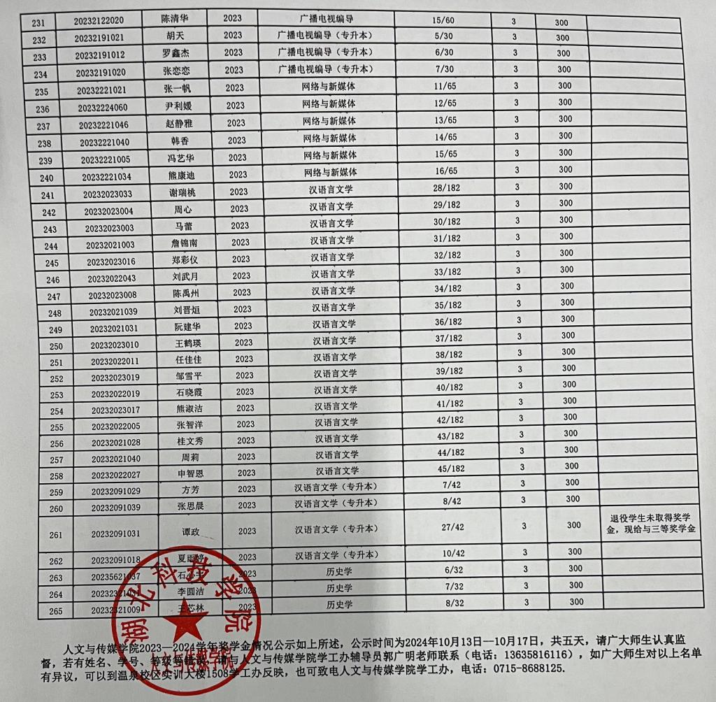 tyc7111cc太阳成集团2023-2024学年奖学金公示