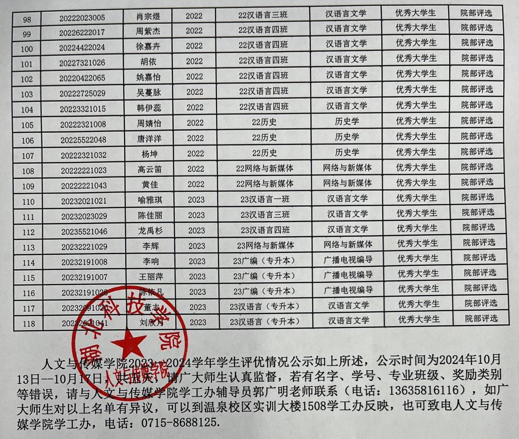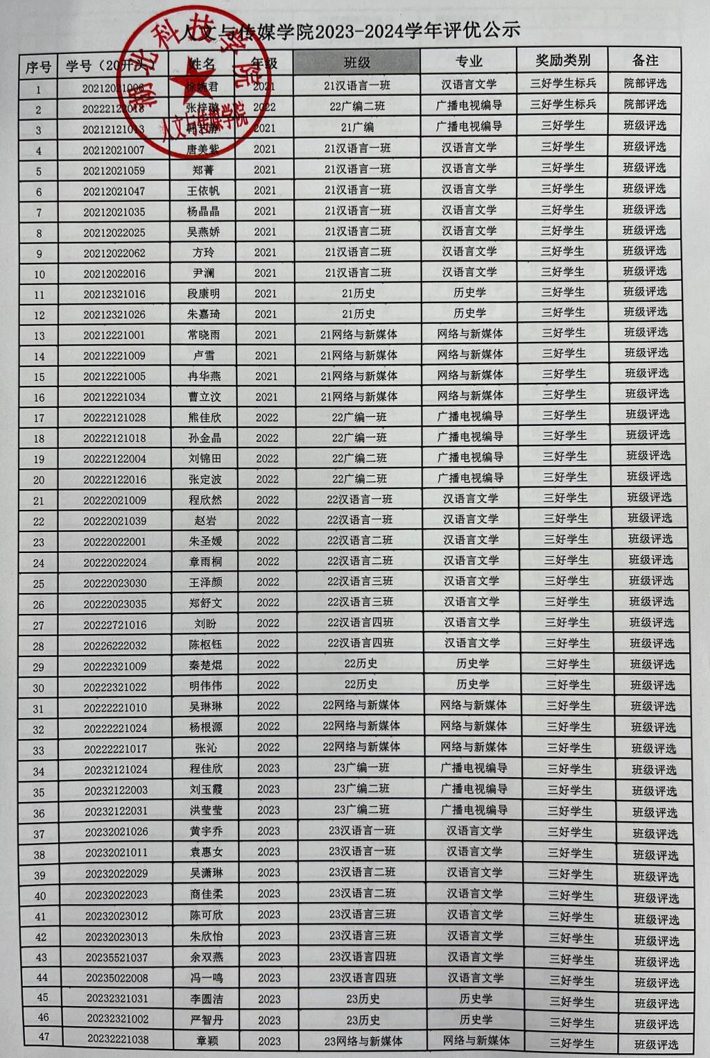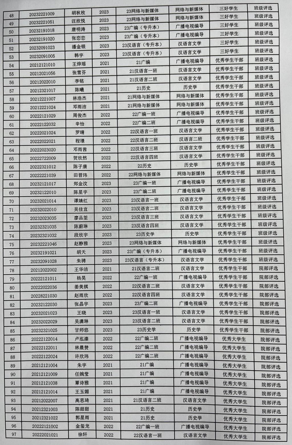 tyc7111cc太阳成集团2023-2024学年学生评优公示