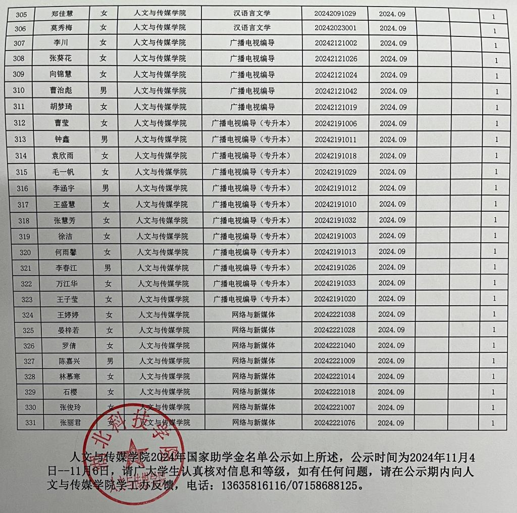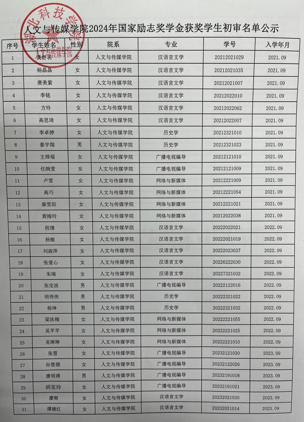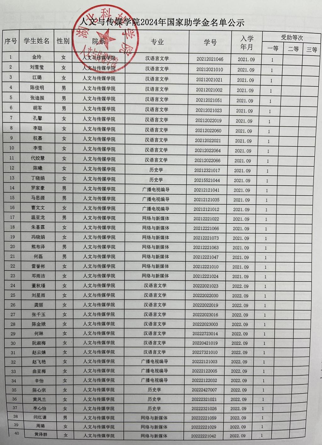 tyc7111cc太阳成集团2024年国家励志奖学金、国家助学金名单公示