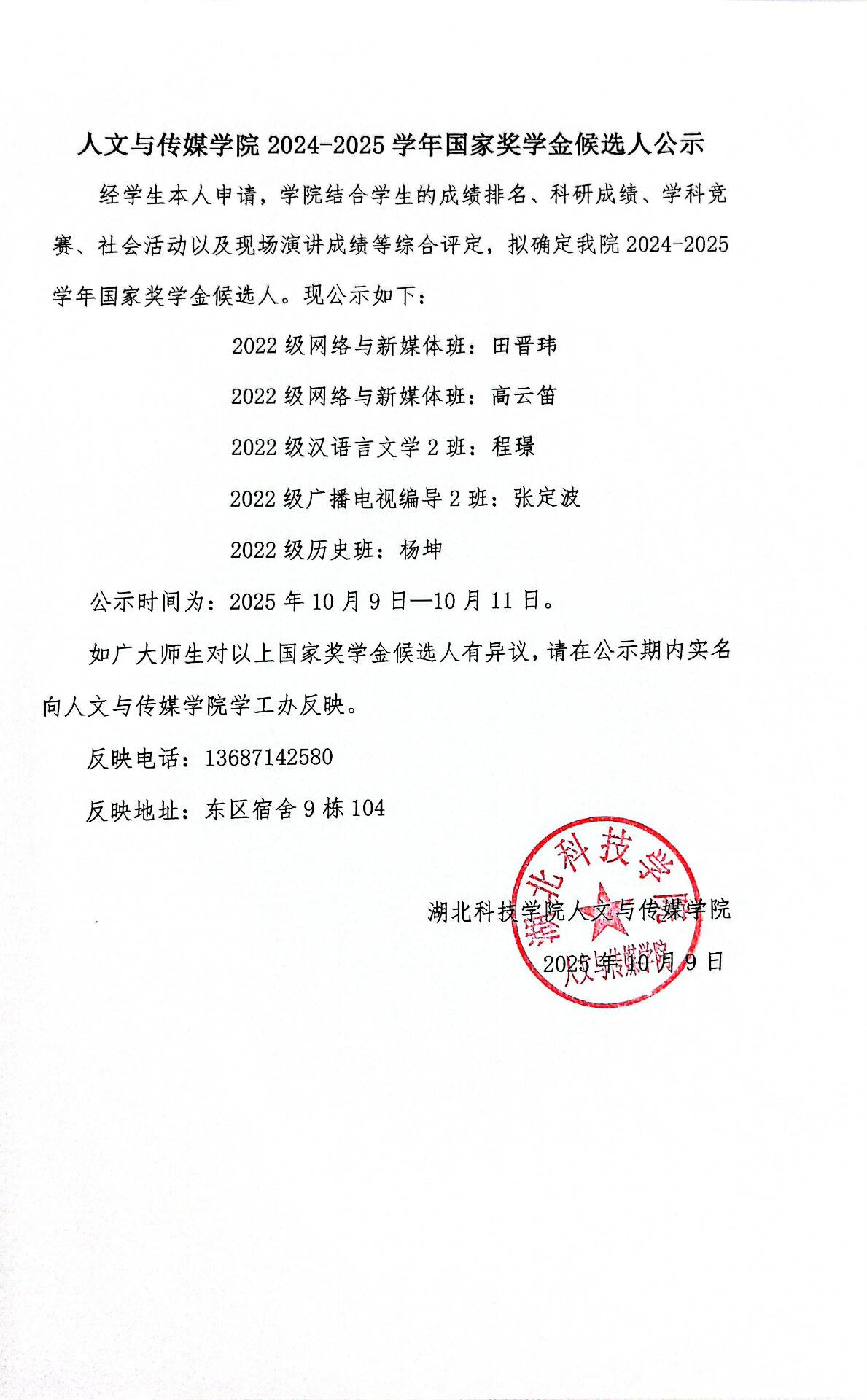 tyc7111cc太阳成集团2024-2025学年国家奖学金候选人公示