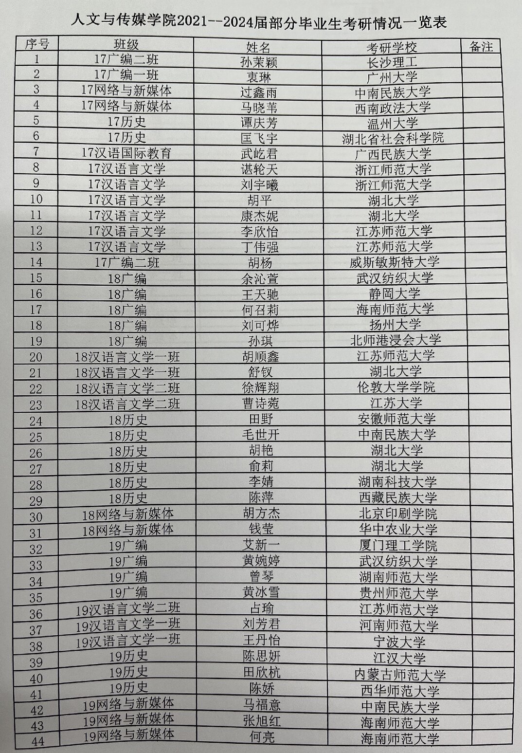 tyc7111cc太阳成集团2021--2024届部分毕业生考研情况一览表