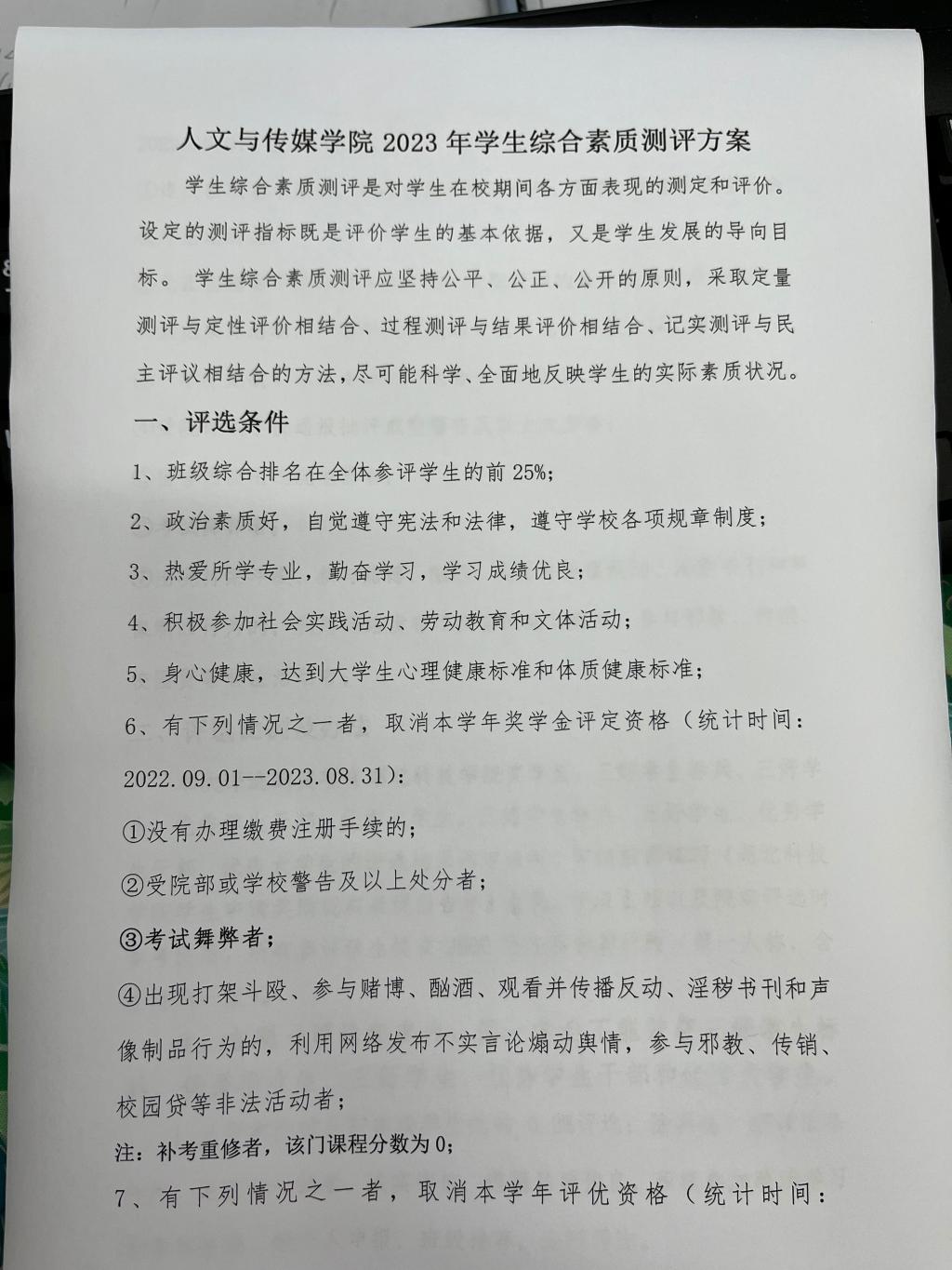 tyc7111cc太阳成集团2023年学生综合素质测评方案