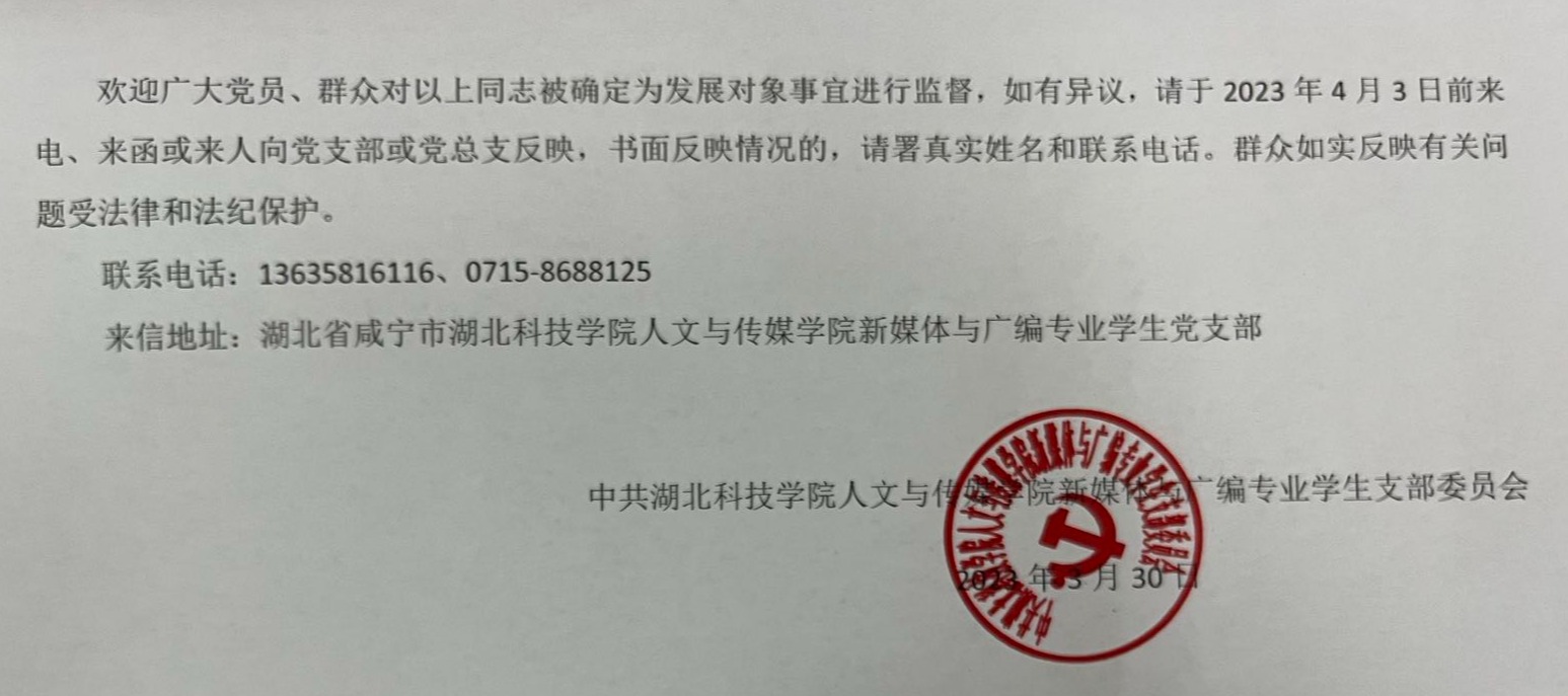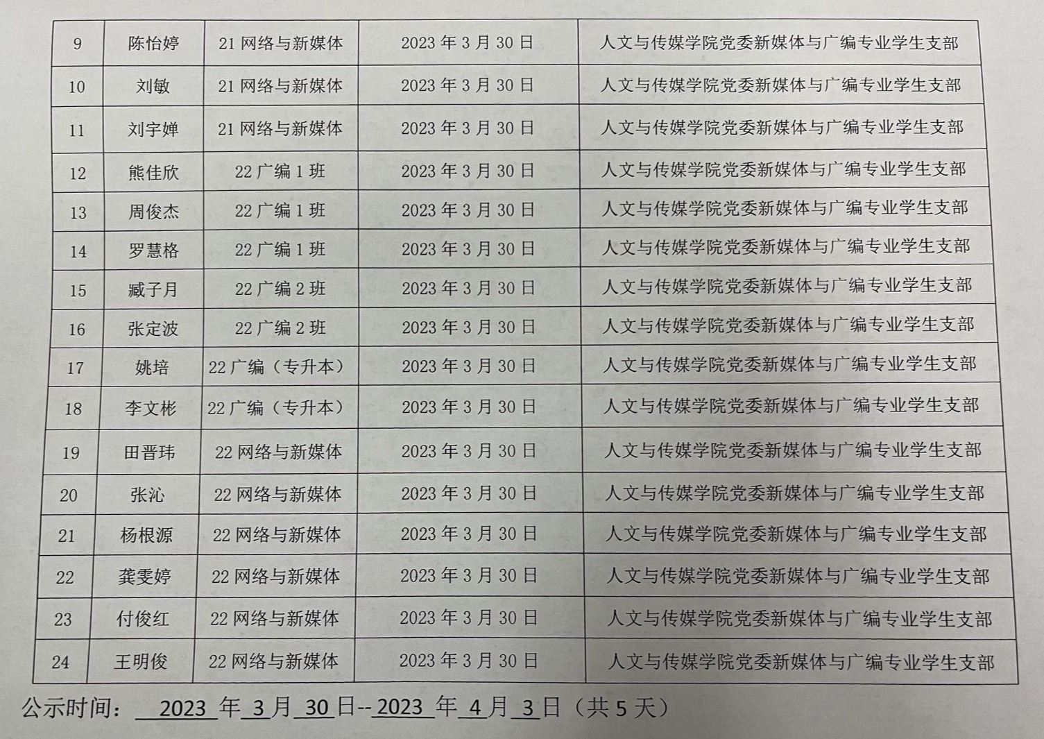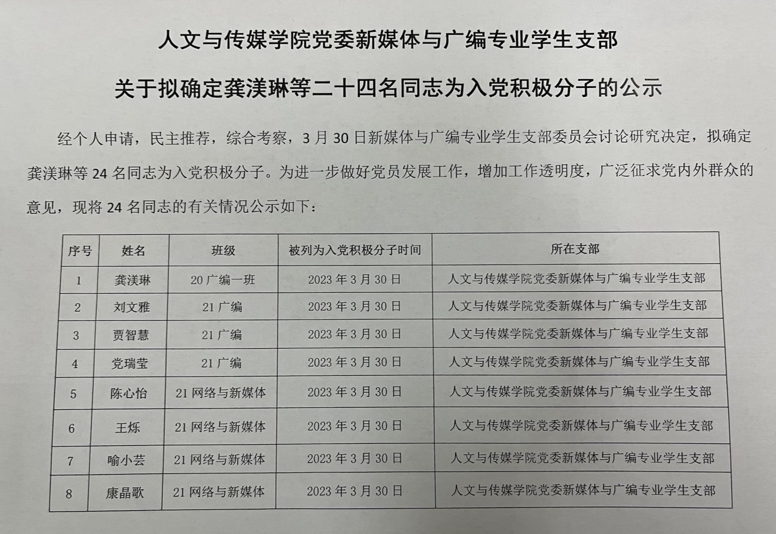 tyc7111cc太阳成集团党委新媒体与广编专业学生支部关于拟确定龚渼琳等二十四名同志为入党积极分子的公示
