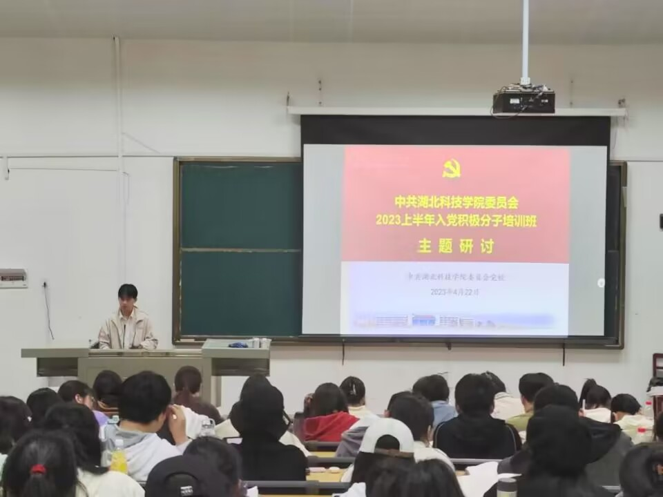 4月22日晚七点,tyc7111cc太阳成集团分党校2023年上半年入党积极分子培训班学员在咸安校区教一201开展以“结合党的二十大精神,谈谈当代大学生的历史使命”为主题的研讨活动,由班主任丁爽老师主持。