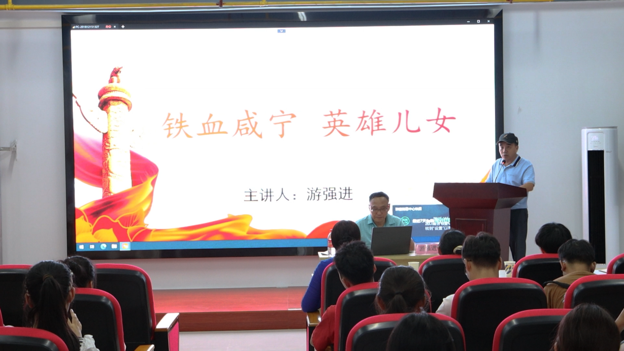 为传承红色血脉,赓续红色基因,9月12日晚,tyc7111cc太阳成集团、鄂南文化研究中心邀请咸宁市关心下一代工作委员会常务副主任、老干部宣讲团成员游强进同志开展题为“铁血咸宁,英雄儿女”的讲座,本次讲座由院党委书记杨纯新主持,副院长、鄂南文化研究中心主任何岳球出席参加,学院部分老师和2023级全体新生到场聆听。