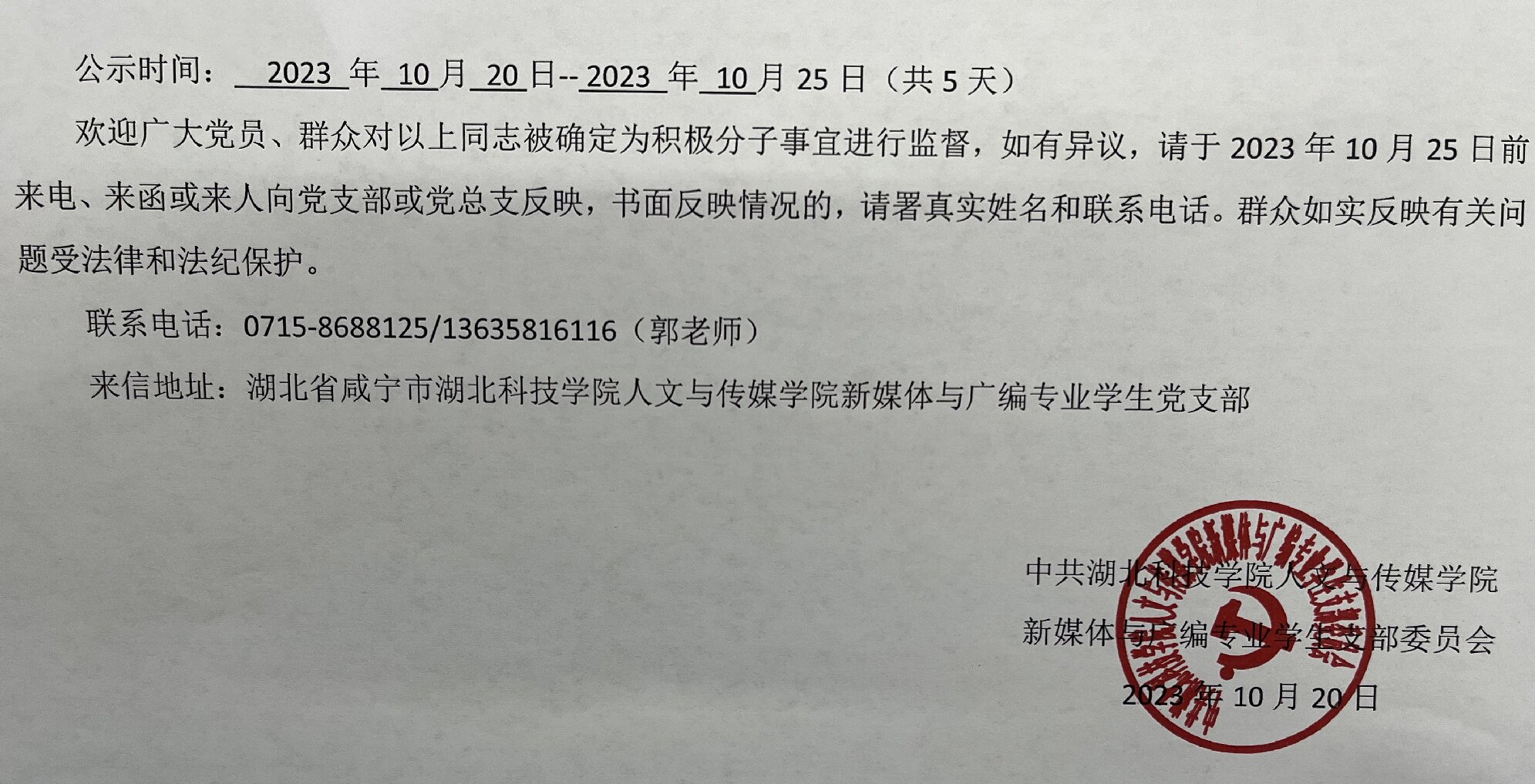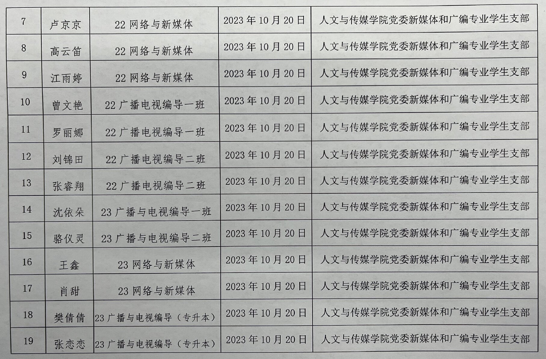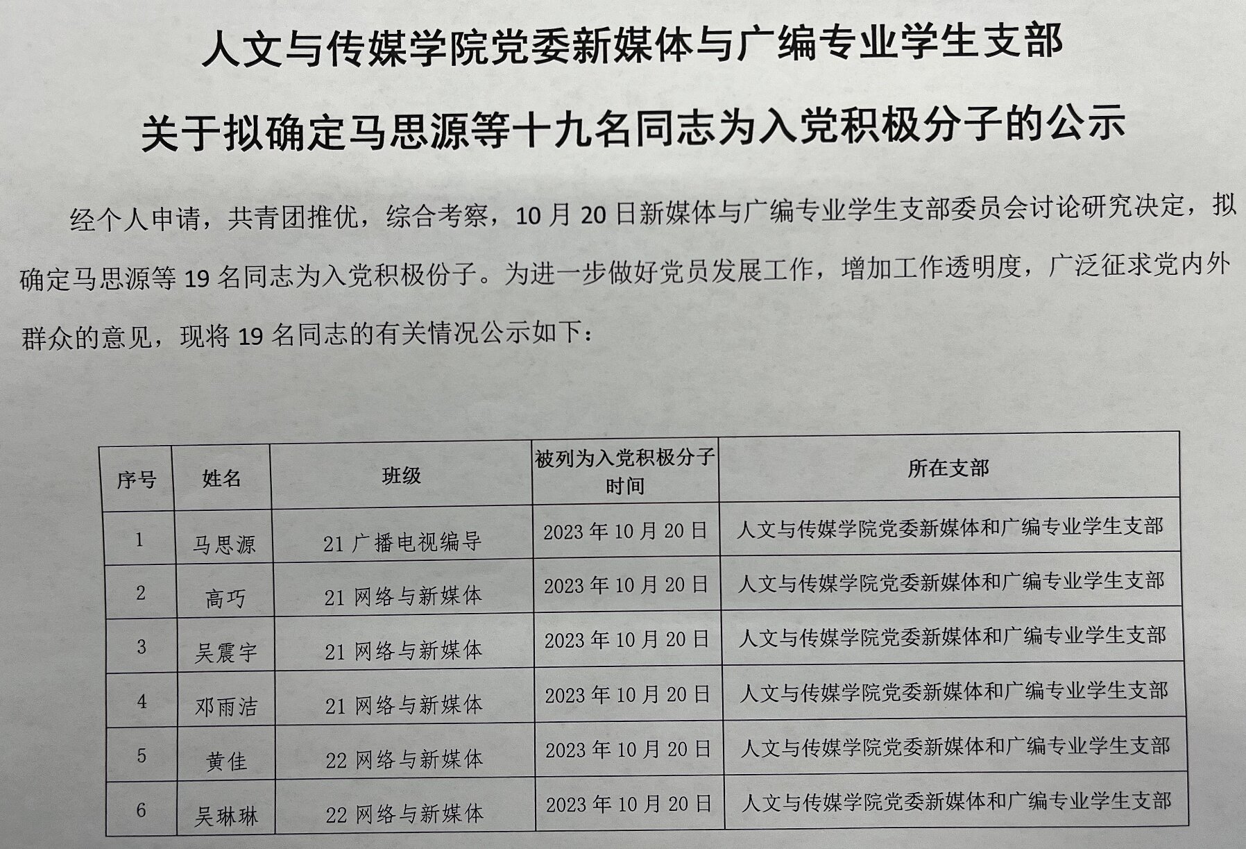 tyc7111cc太阳成集团党委新媒体与广编专业学生支部关于拟确定马思源等十九名同志为入党积极分子的公示