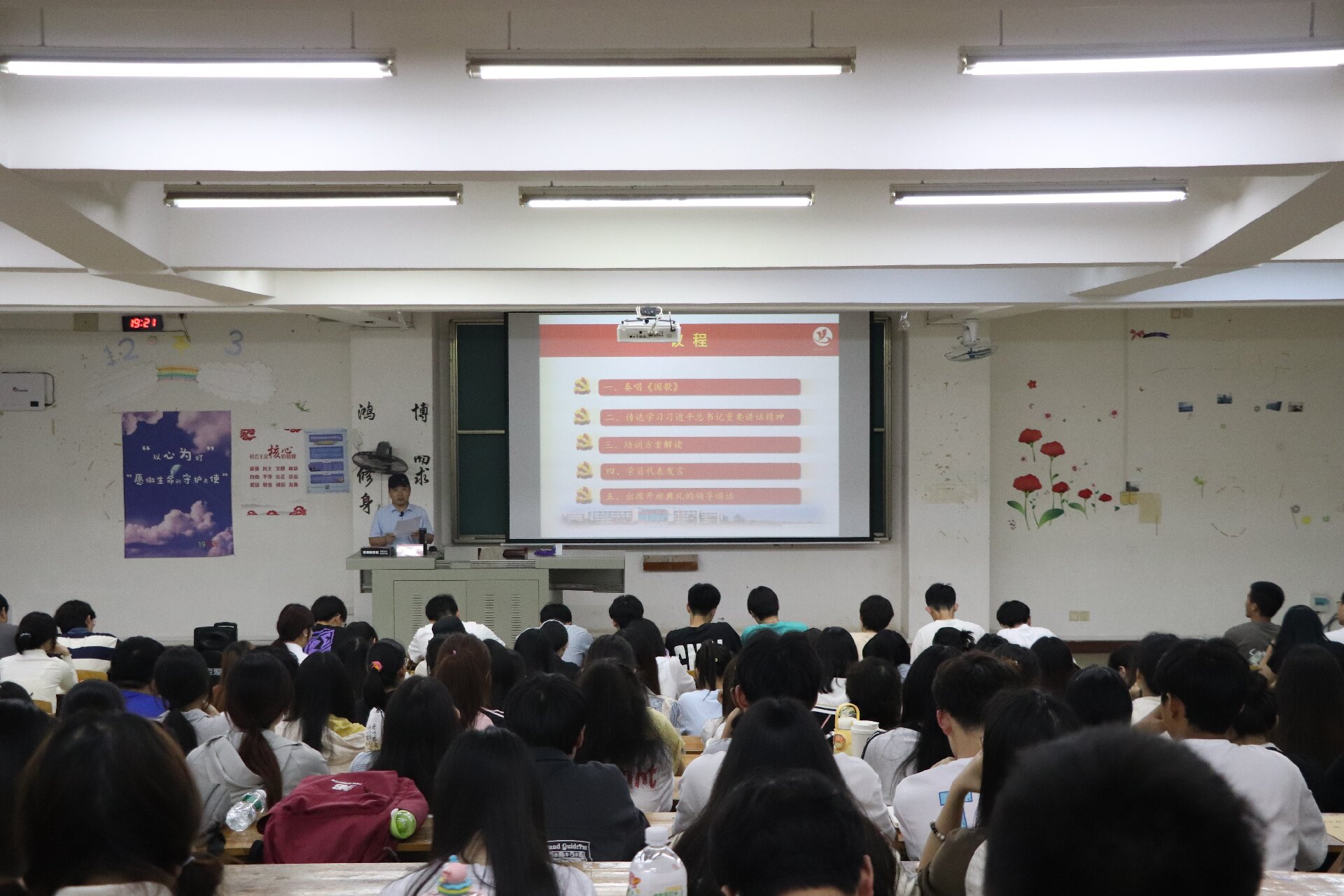 开班仪式在庄严的国歌声中拉开序幕。活动首先由杨纯新书记传达学习习近平总书记重要讲话精神及解读本期入党积极分子培训方案,随后学员代表赵静雅同学进行了表态发言。最后,杨书记作总结讲话。他指出我们要坚定理想信念,肩负历史使命,为学校、国家的发展贡献一份自己的力量。同时还向全体学员提出三点要求:一是要淬炼入党初心,充分认识集中培训的重要意义;二是要坚定理想信念,努力在“学思践悟”中提高自身综合素质;三是要注重学用结合,力争在知行合一中精气神上“展新貌”、在学业上“促提升”。