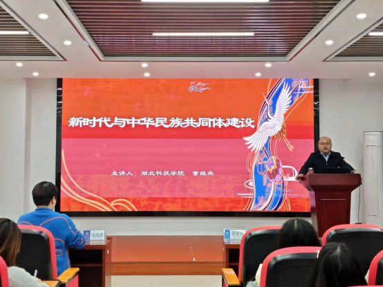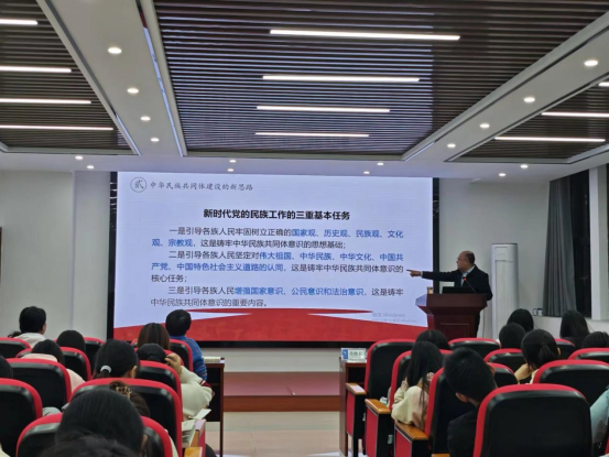 讲座尾声,董书记勉励学生骨干自觉担当时代使命,积极践行党的理论创新成果,在日常学习与生活中尊重文化差异、促进理解包容,主动搭建各民族同学交往、交流、交融的桥梁,争做维护民族团结的先进表率。