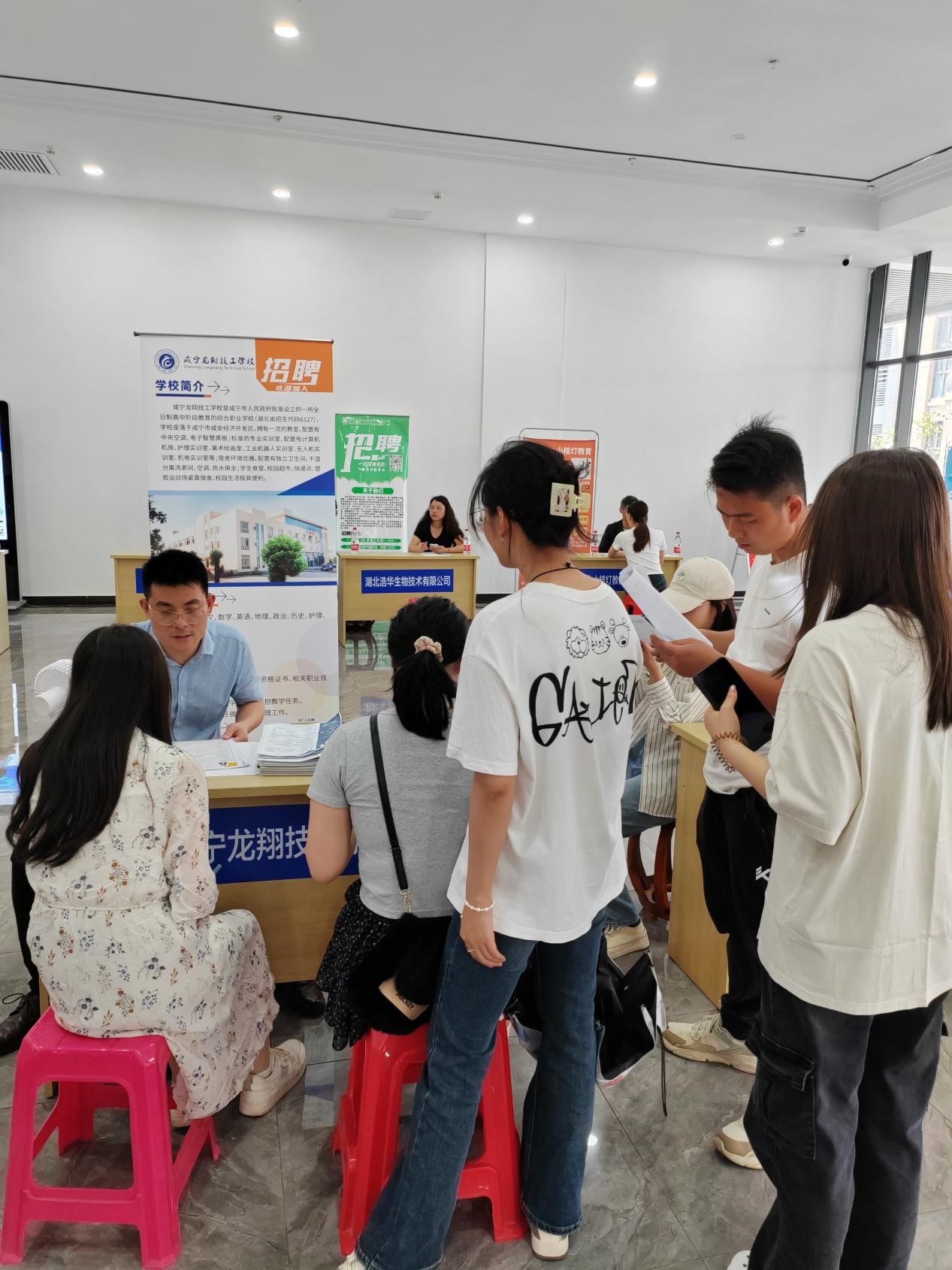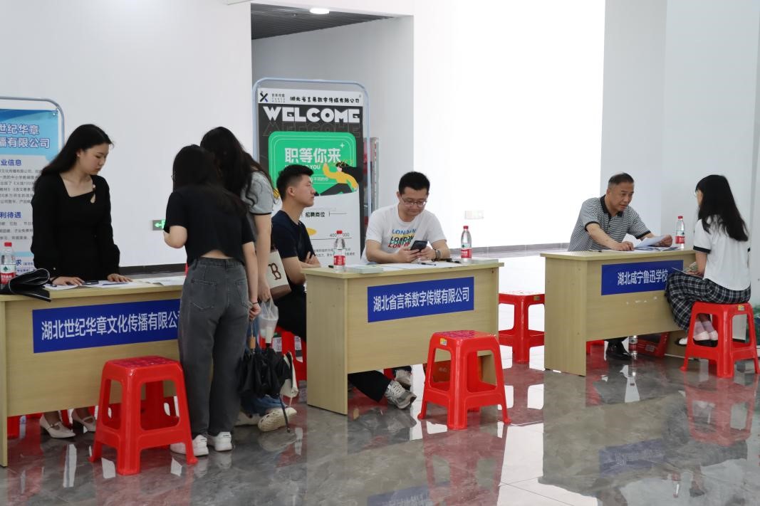 本次招聘会共邀请了15家企业现场参会,提供了两百余个就业岗位,涵盖教育类、传媒类等领域。各用人单位诚意满满,耐心为学生们介绍工作环境、招聘条件、薪资待遇、发展前景。湖北咸宁鲁迅学校的罗校长对此次招聘会的举办表示认可和赞扬,罗校长表示:“我一共收到30余份简历,湖科学生的综合素质和专业能力都很强,我们会再次联系这些同学,进行后续的笔试、面试等招聘工作。”湖北众创影视传媒有限责任公司看重学生的实践能力,招聘现场让学生进行拍照、摄影、策划,以期待选出和岗位相匹配的学生。