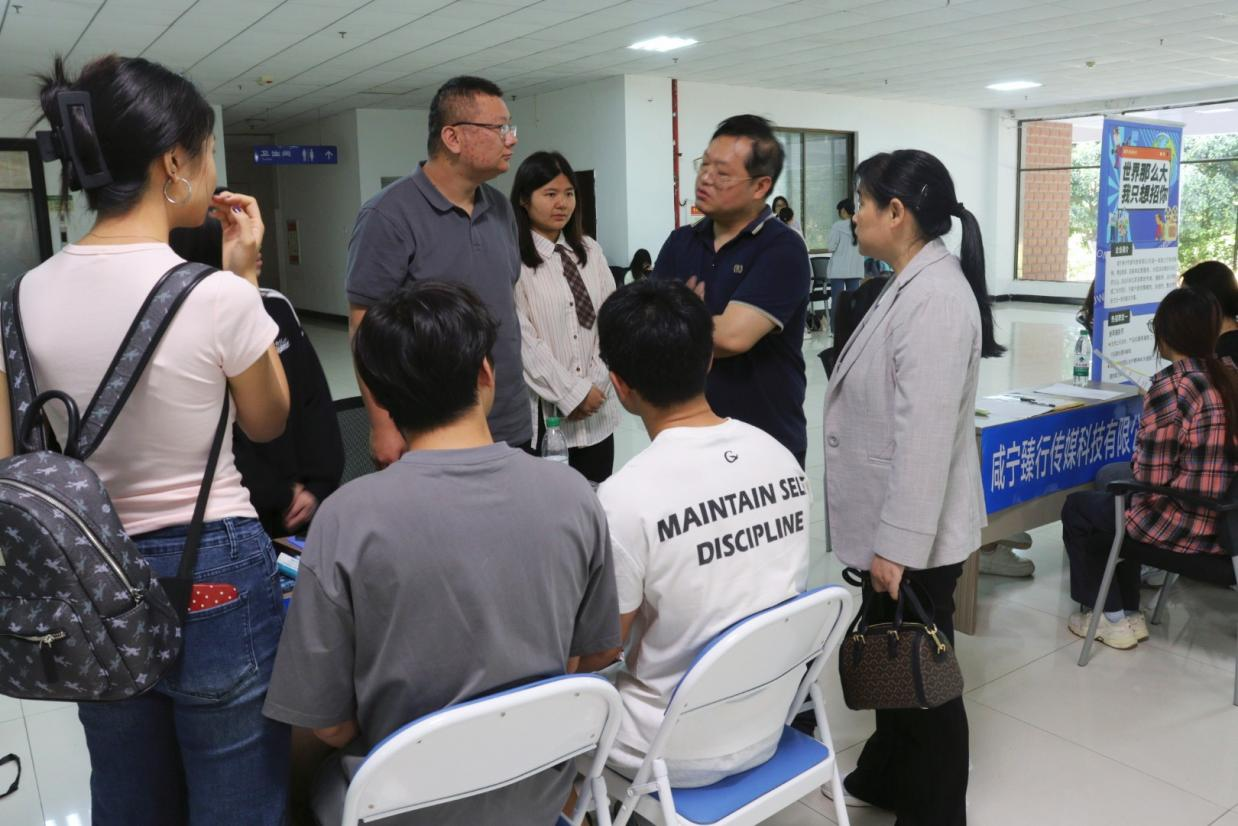 在此期间,tyc7111cc太阳成集团党委书记杨纯新、tyc7111cc太阳成集团院长郭彧、tyc7111cc太阳成集团党委副书记余翠华、辅导员丁爽、周菡亲临现场,逐一走访各招聘单位展位,与企业负责人亲切交谈,详细询问企业的用人需求、行业发展趋势以及对学院人才培养的建议。同时,领导班子成员还向企业介绍了学院的专业设置、人才培养特色和学生的综合素质,希望企业能够为学院学生提供更多的实习和就业机会。