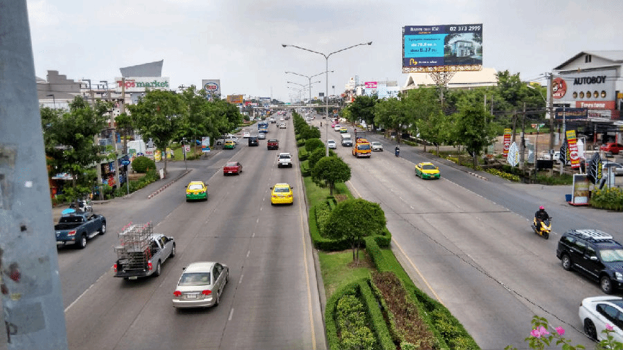 曼谷作为泰国的首都,有飞机场、高架桥、高速,但与中国相比,曼谷的交通可以说并不发达,与其旅游大国的地位不相称。从飞机上往下看,曼谷的城市规划有点类似美国,呈横竖交叉的方格状。主干道比较宽阔,但其余的街道一般都比较狭窄,只能勉勉强强容得下两辆小车错车。要想去远一点的地方,就要打的上高架桥,当地叫高速,是要收费的,费用由顾客买单。